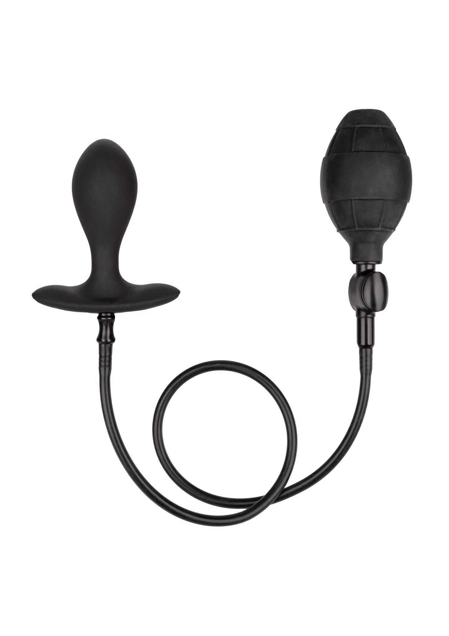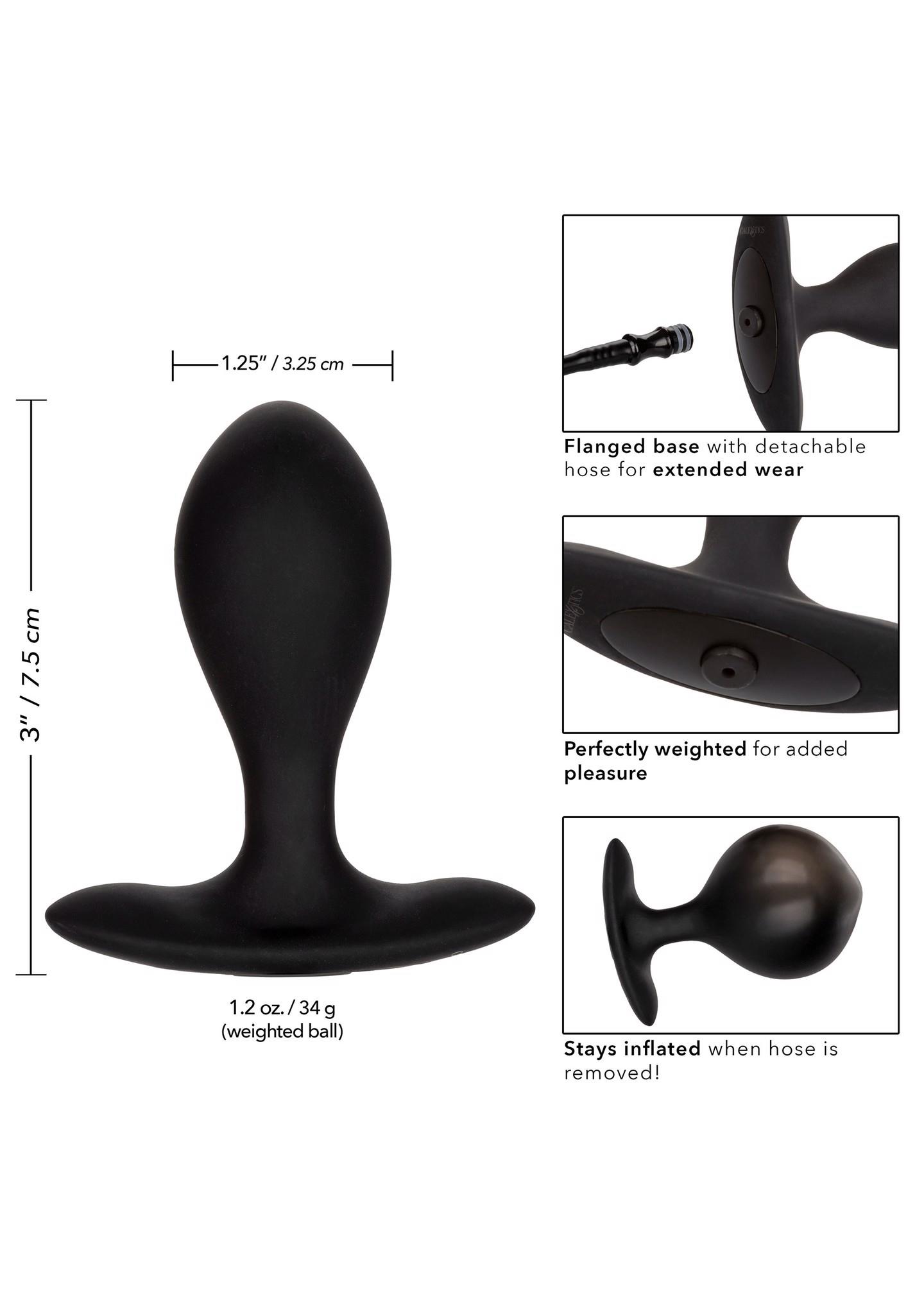 The CalExotics Weighted Silicone Inflatable Plug is a one-of-a-kind anal probe with inflatable weighted body, easy squeeze bulb and detachable hose. For increased pleasure, this probe is perfectly weighted with a 1.2 oz ball. To inflate your ecstasy, simply attach the hose and press the easy squeeze bulb. Once you’ve reached the desired size, the probe will hold its size even when the hose is removed. A quick air release button allows for gentle deflation and removal. To enjoy the exhilarating world of anal pleasure to the fullest, sensual stimulation is the key to success. The tapered silicone probe has the perfect amount of flex to bend and move naturally with your body. The durable flanged base is perfect for insertion, stimulation and removal. The flexible probe, hose and bulb are made from a seamless silicone with ABS plastic release valves. The silicone plug has an overall size of 3” x 1.25” (7.5 cm x 3.25 cm) – before inflation.
