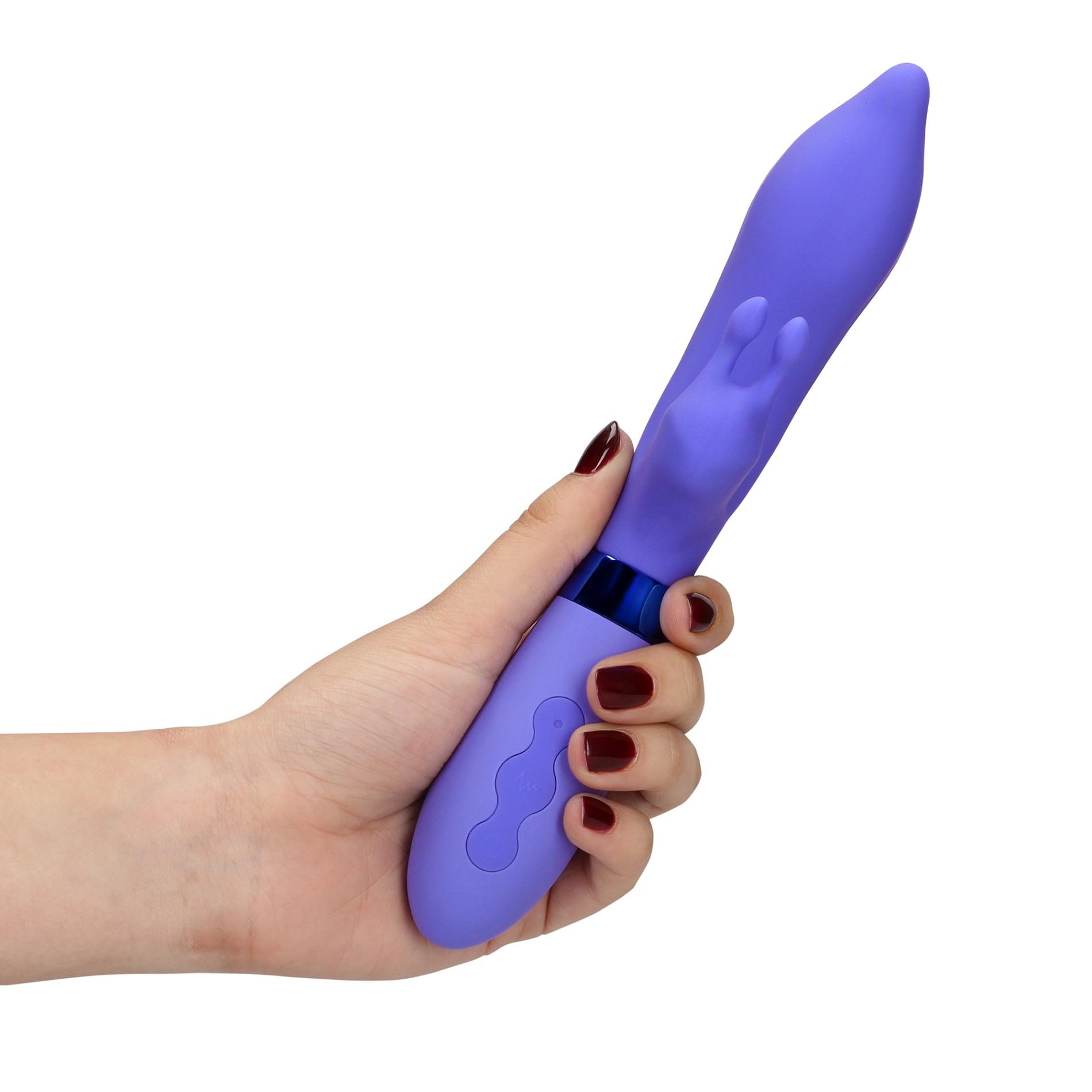 Ten silikonowy wibrator królik został zaprojektowany do jednoczesnej stymulacji łechtaczki i punktu G, tworząc mieszane orgazmy. Odkryj niekończące się chwile radości i zaskoczenia z tym wibratorem Loveline.