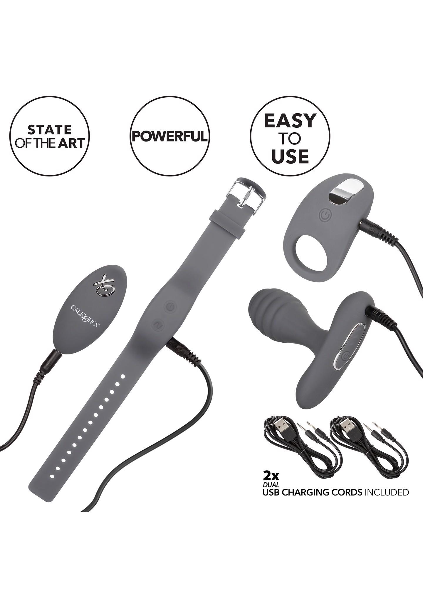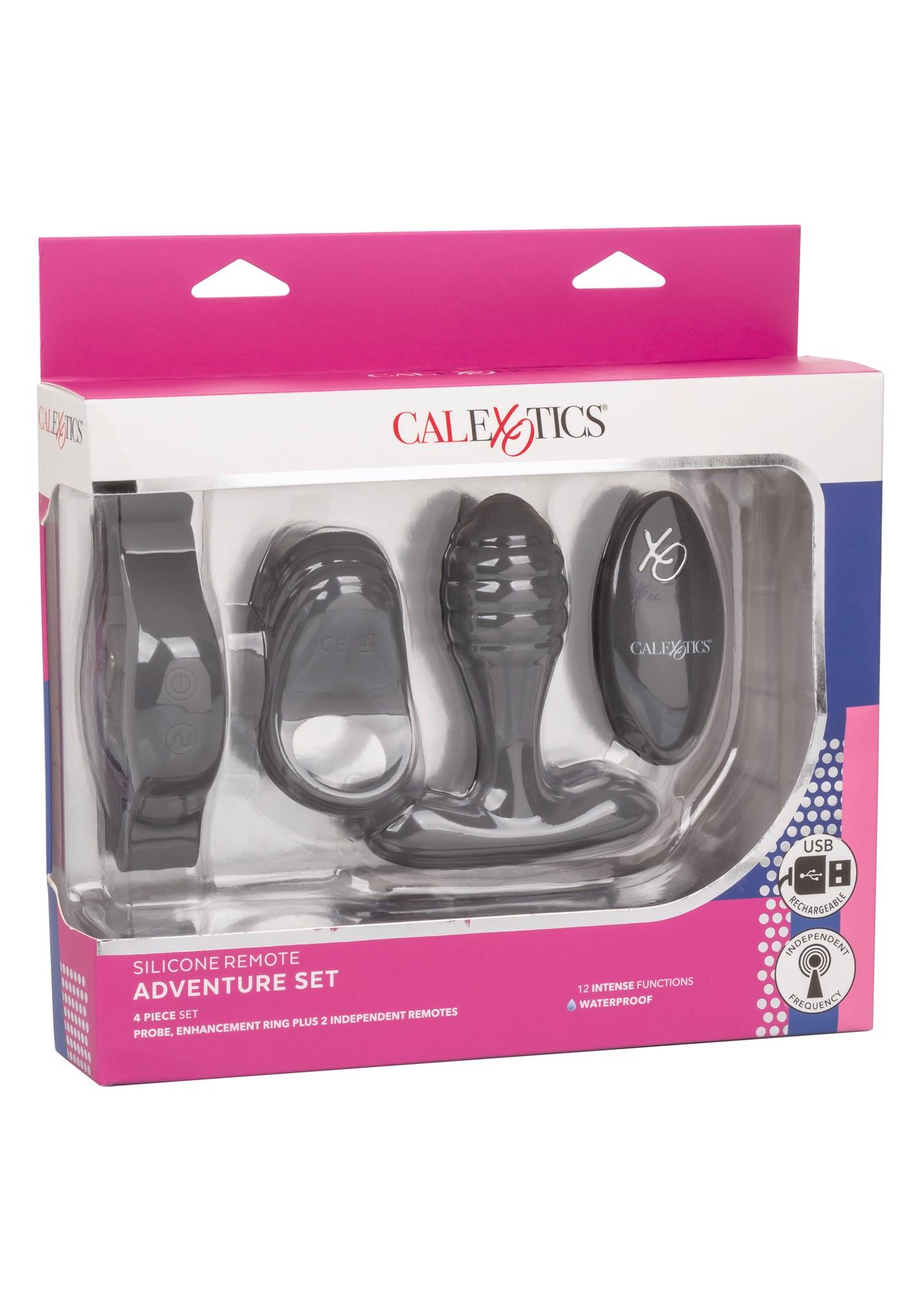 Whether you want to get down and dirty with a partner or indulge in sensual solo time, this thrilling Silicone Remote Adventure Set is versatile pleasure experience. The wickedly naughty set includes an Ultra-Soft Probe with wristband remote control and ribbed enhancement ring with discreet handheld remote.