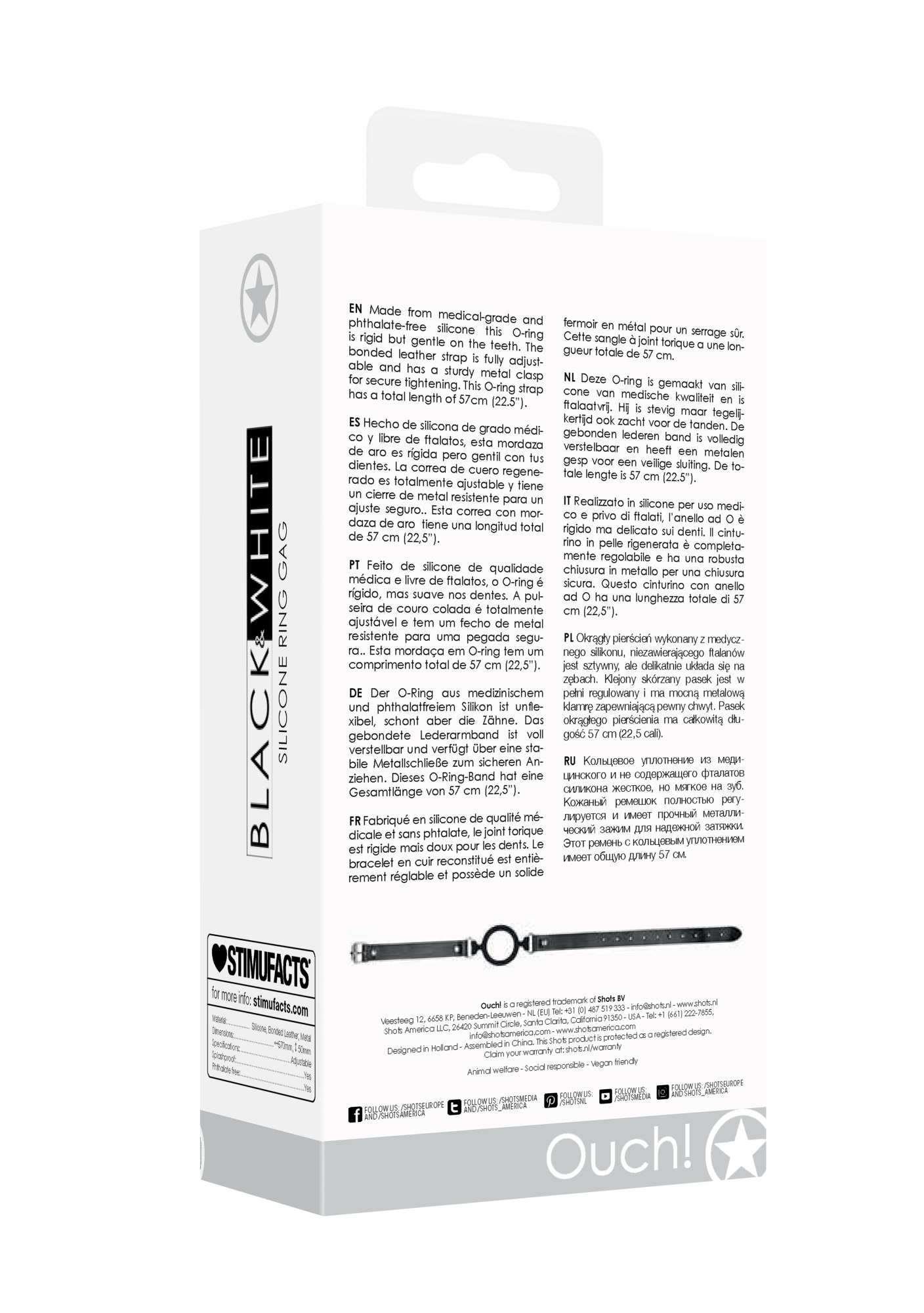 Jedwabiście gładki i w pełni regulowany silikonowy knebel z okrągłym pierścień idealnie nadaje się do wygodnego, a jednocześnie niezawodnego zniewolenia. Rozciągaj i otwieraj wargi podległej osobie, zyskując pełen wachlarz możliwości zabawy, dzięki temu pięknie wykonanemu urządzeniu! Okrągły pierścień wykonany z medycznego silikonu, niezawierającego ftalanów jest sztywny, ale delikatnie układa się na zębach. Skórzany pasek jest w pełni regulowany i wyposażony w mocną metalową klamrę, zapewniającą mocne ściśnięcie. Pasek okrągłego pierścienia ma całkowitą długość 57 cm (22,5 cali). Wewnętrzna średnica rozciągliwego silikonowego pierścienia wynosi 4 cm (1,6 cala).