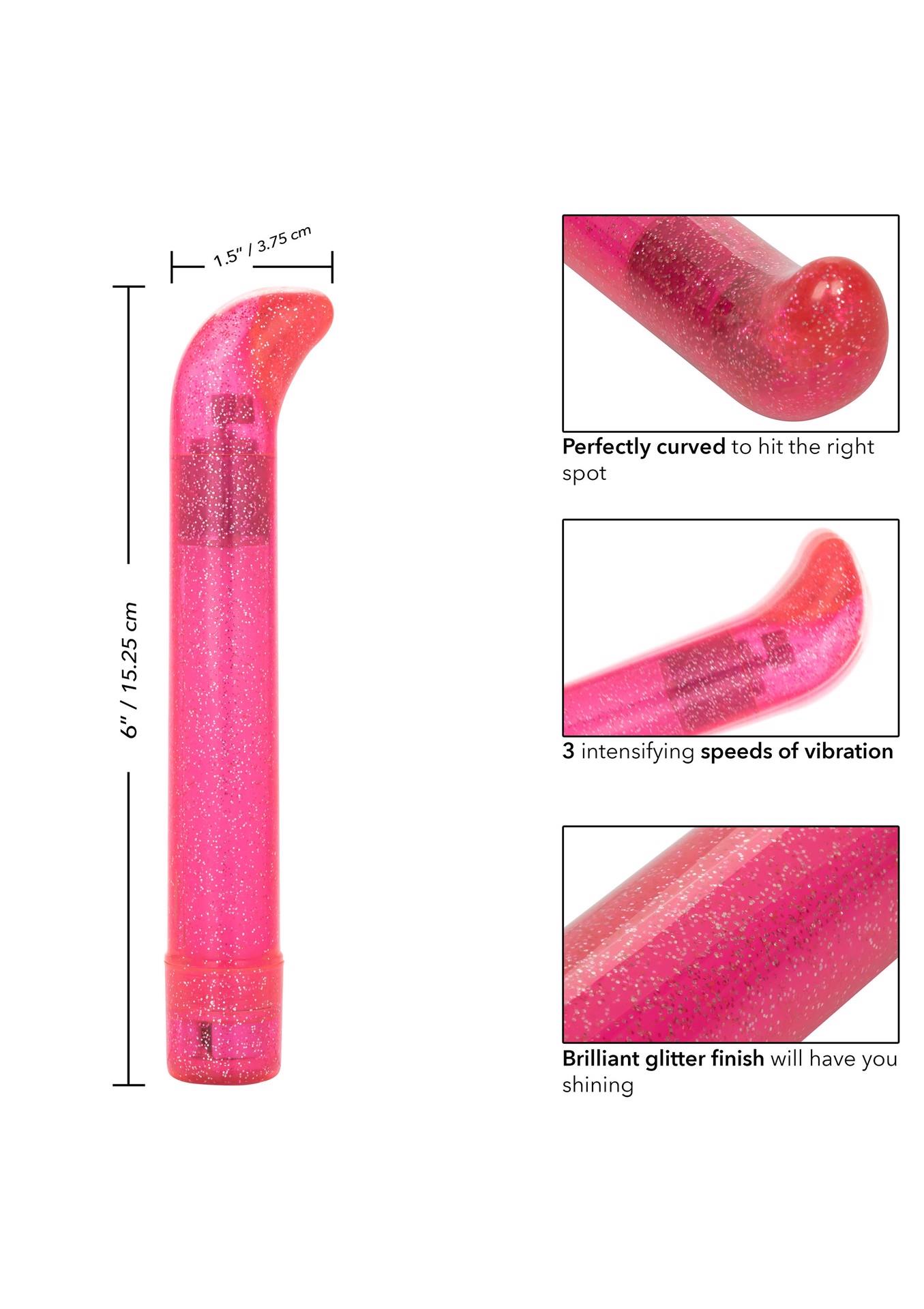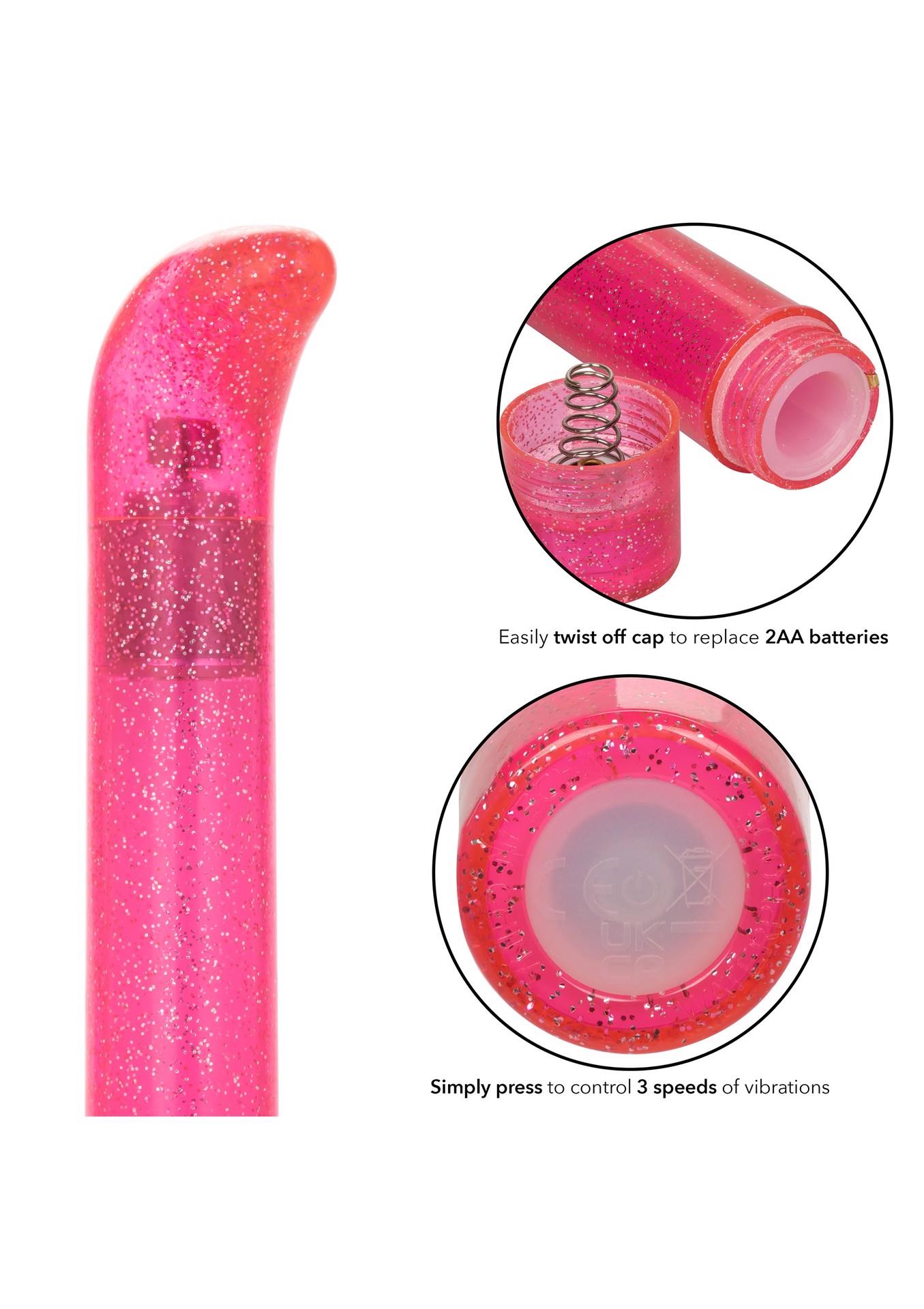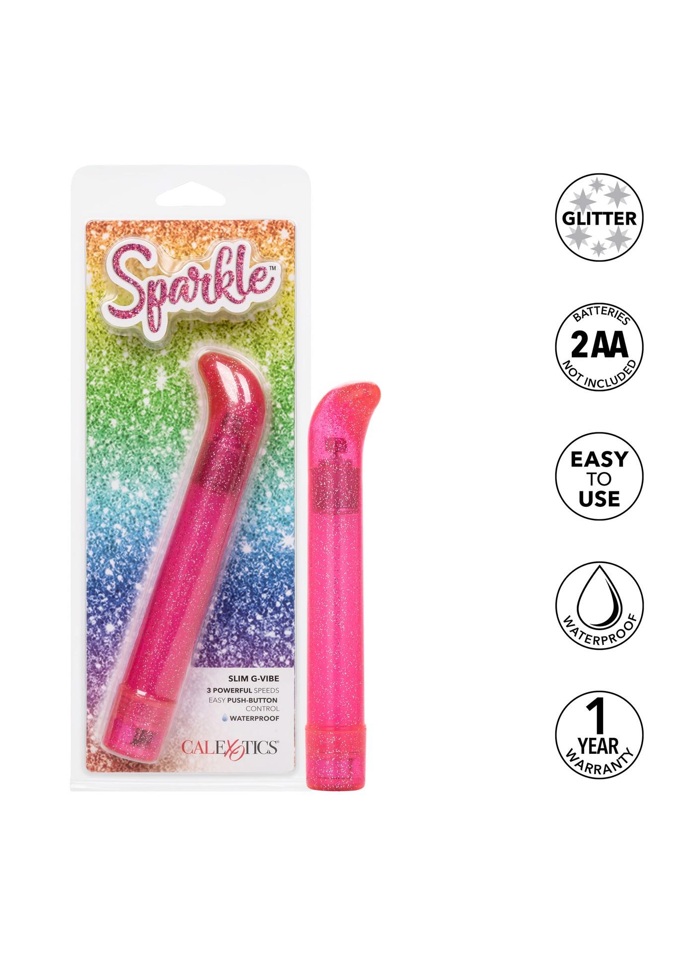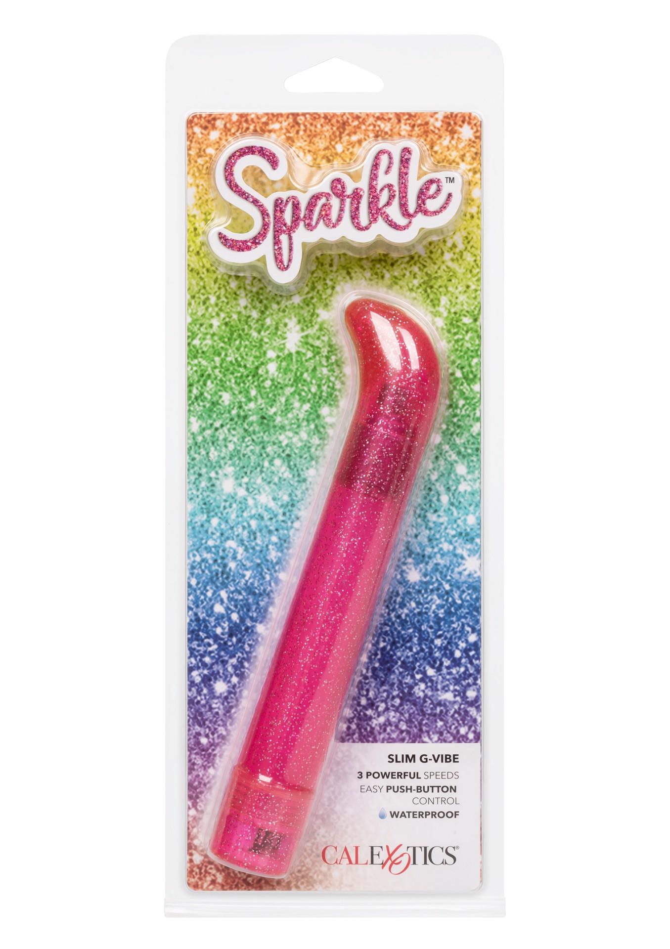 Indulge in dazzling pleasure with the Sparkle Slim G Vibe, a sleek g-spot massager and 3 speeds of vibration. With an easy-to-use button and waterproof design, this is an erotic toy box must-have for beginners and erotic adventurers alike. This high-powered massager is created with a sleek, seamless body and gently curved tip to let you effortlessly control stimulation.