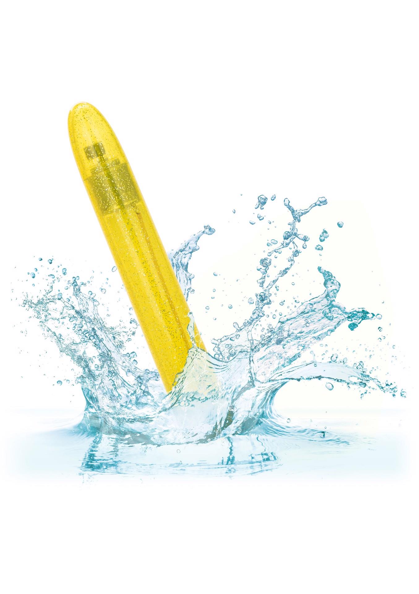 Whether you’re taking a dip with a lover or indulging in a steamy solo session, alluring adventure await you with this dazzling vibrator. Plunge into total ecstasy as this orgasmic vibe rubs, tickles and teases. The playful vibe is made from a smooth ABS plastic with sparkly glitter finish and silicone button. Power up your pleasure with 2 AA battery.