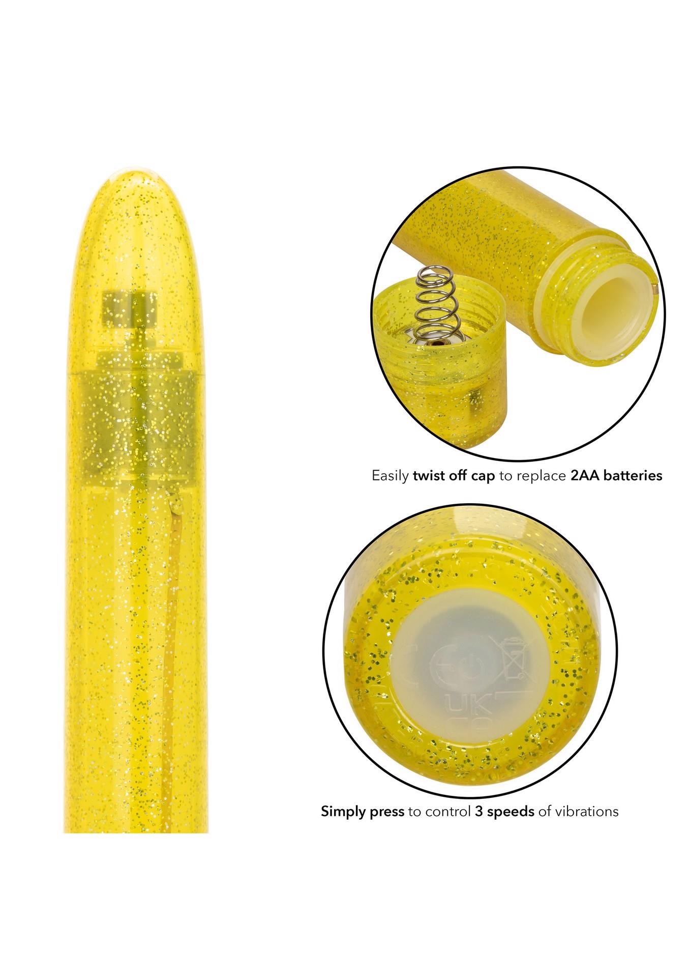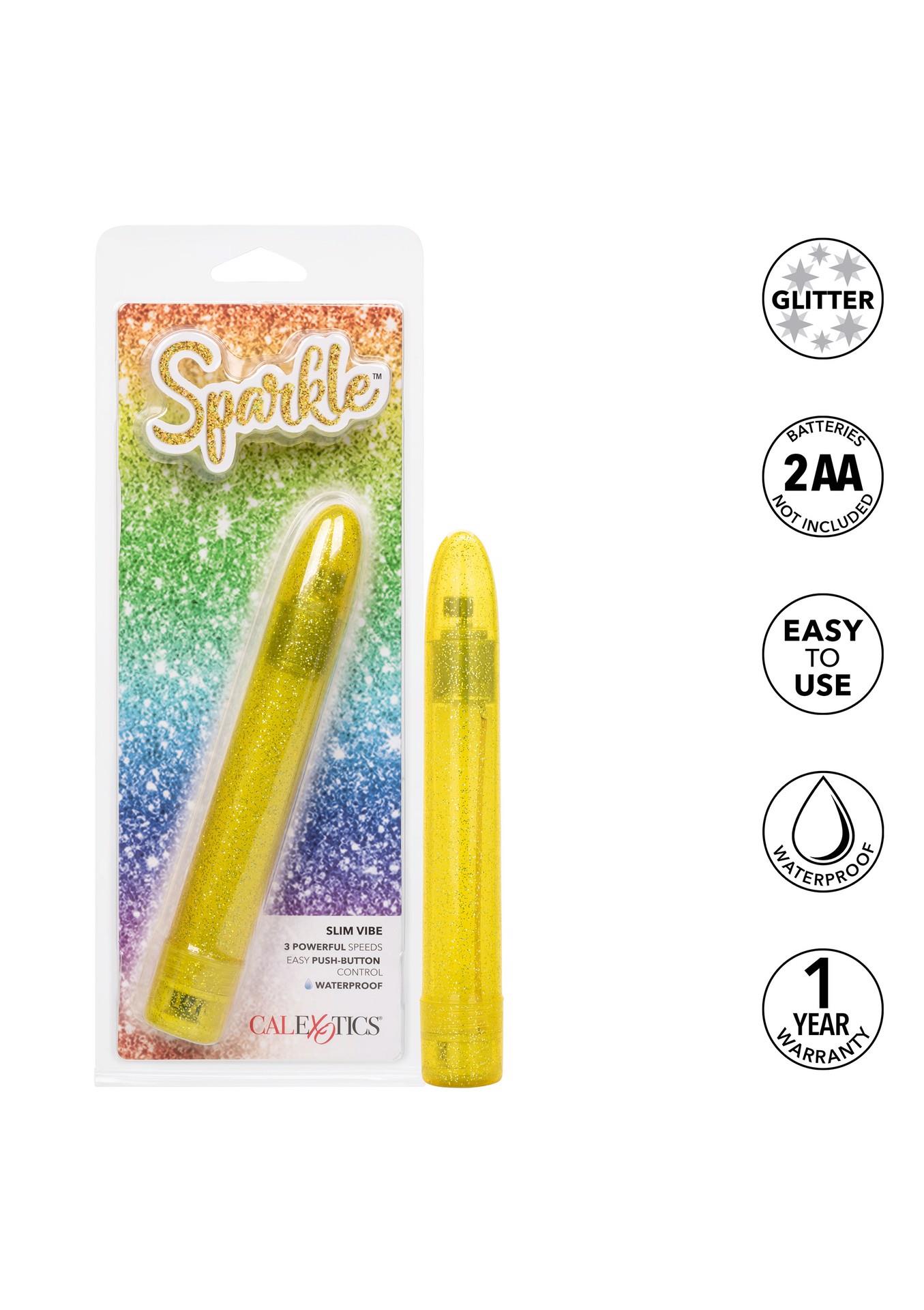 Indulge in dazzling pleasure with the Sparkle Slim Vibe, a sleek massager and 3 speeds of vibration. With an easy-to-use button and waterproof design, this is an erotic toy box must-have for beginners and erotic adventurers alike. This high-powered massager is created with a sleek, seamless body and gently curved tip to let you effortlessly control stimulation.