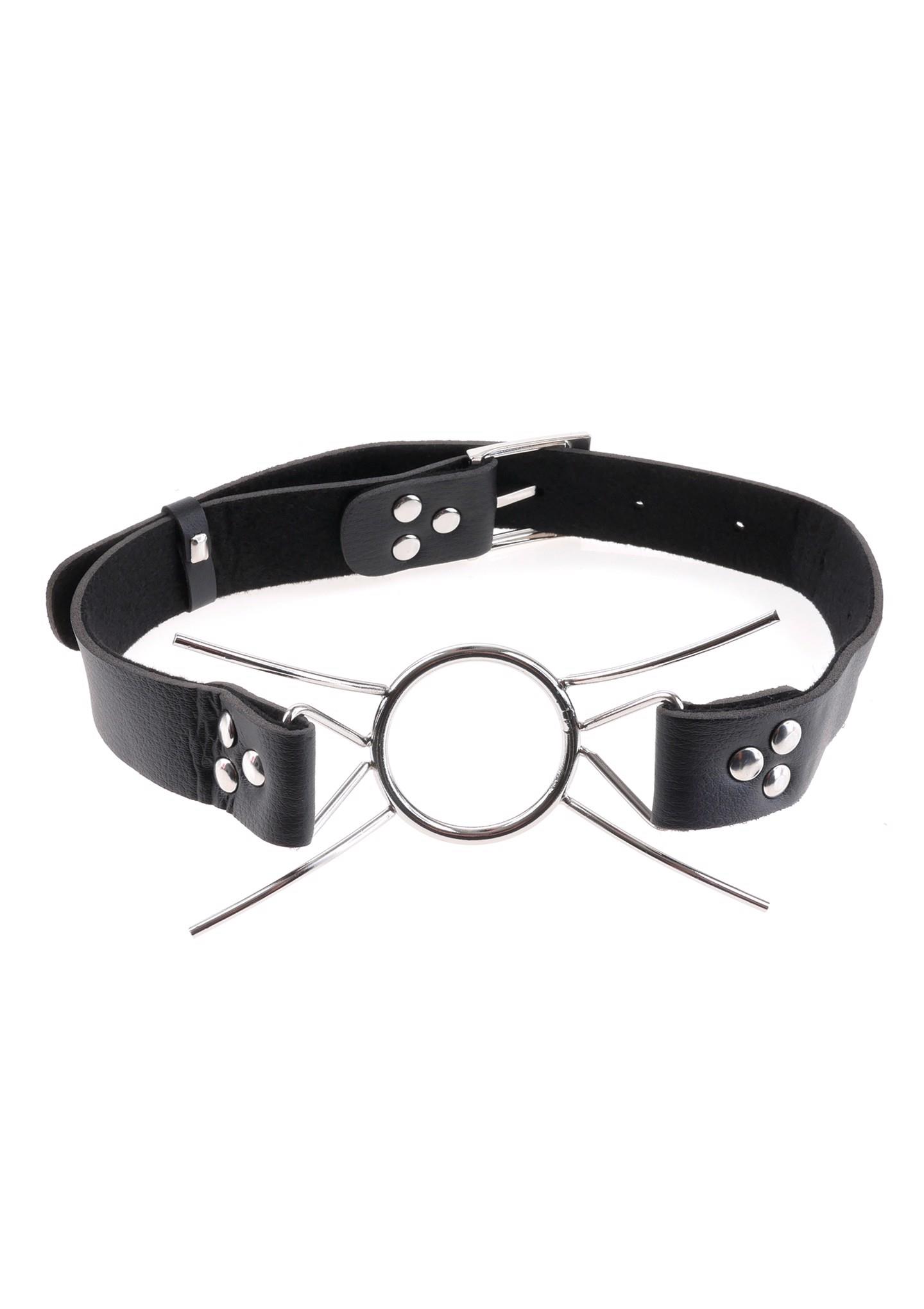 Ten ekstremalny knebel składa się z pierścienia stalowego i czterech zakrzywionych nóg’ przyłączonych do pierścienia. Knebel i nogi mają pozostawić usta osoby otwarte na cokolwiek chcesz. Średnica pierścienia mierzy 3,8 cm’, knebel łączy się ze skórzanym paskiem z klamrą z tyłu.