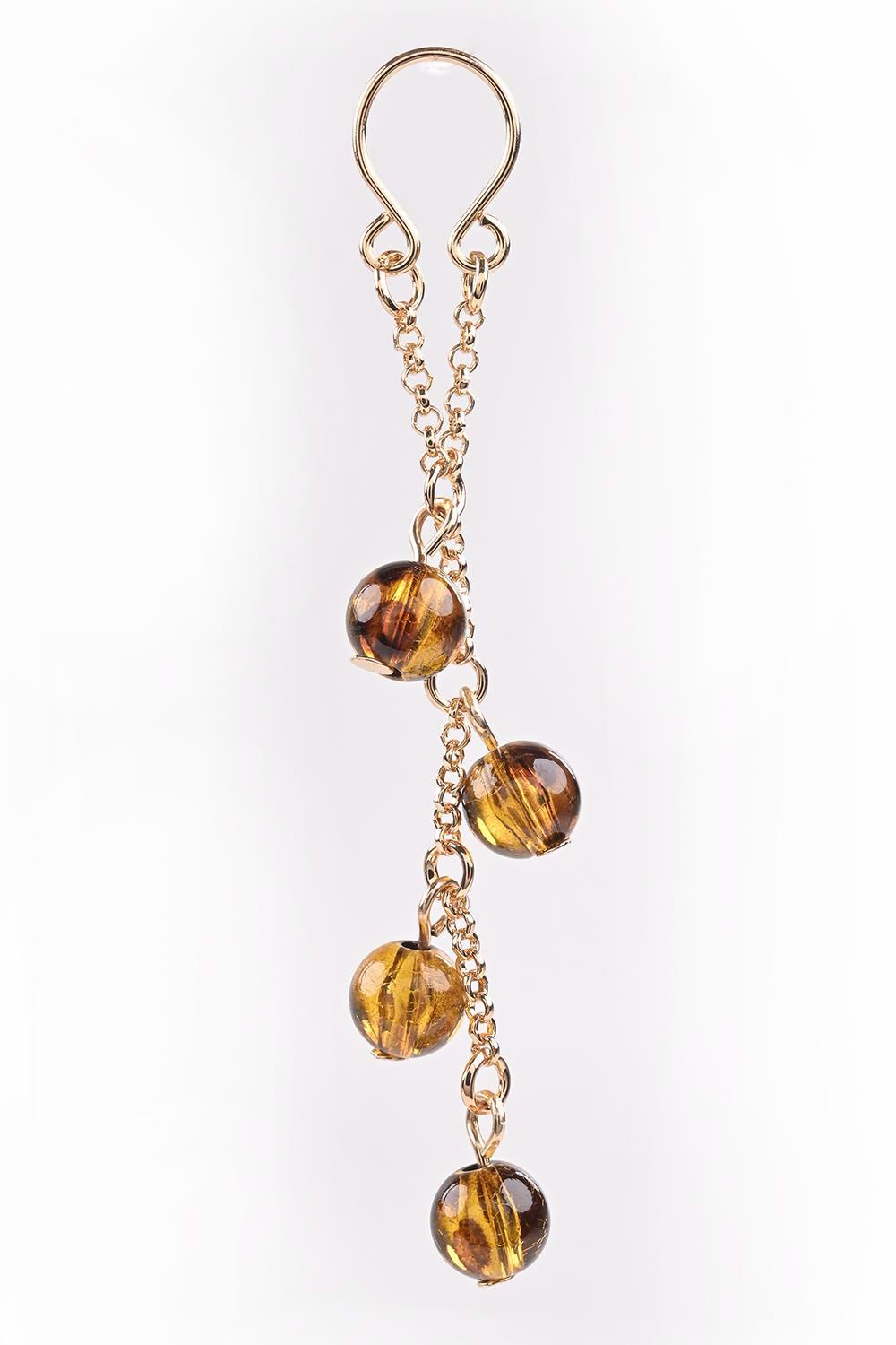 Udekoruj swój biust bursztynową biżuterią na sutki, starannie wykonaną z pozłacanym regulowanym pierścieniem na sutek, pasującym do każdego rozmiaru. Przyciągnij ich wzrok wykwintnymi koralikami inspirowanymi skorupą żółwia, idealnymi do machania i ciągnięcia podczas zabawy sutkami.