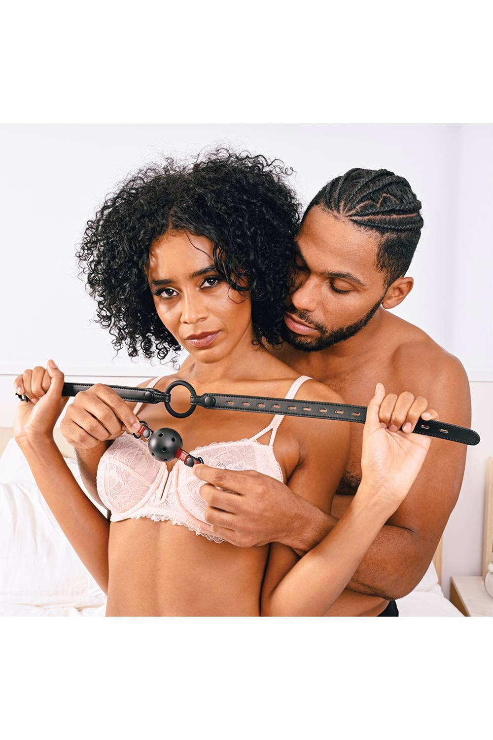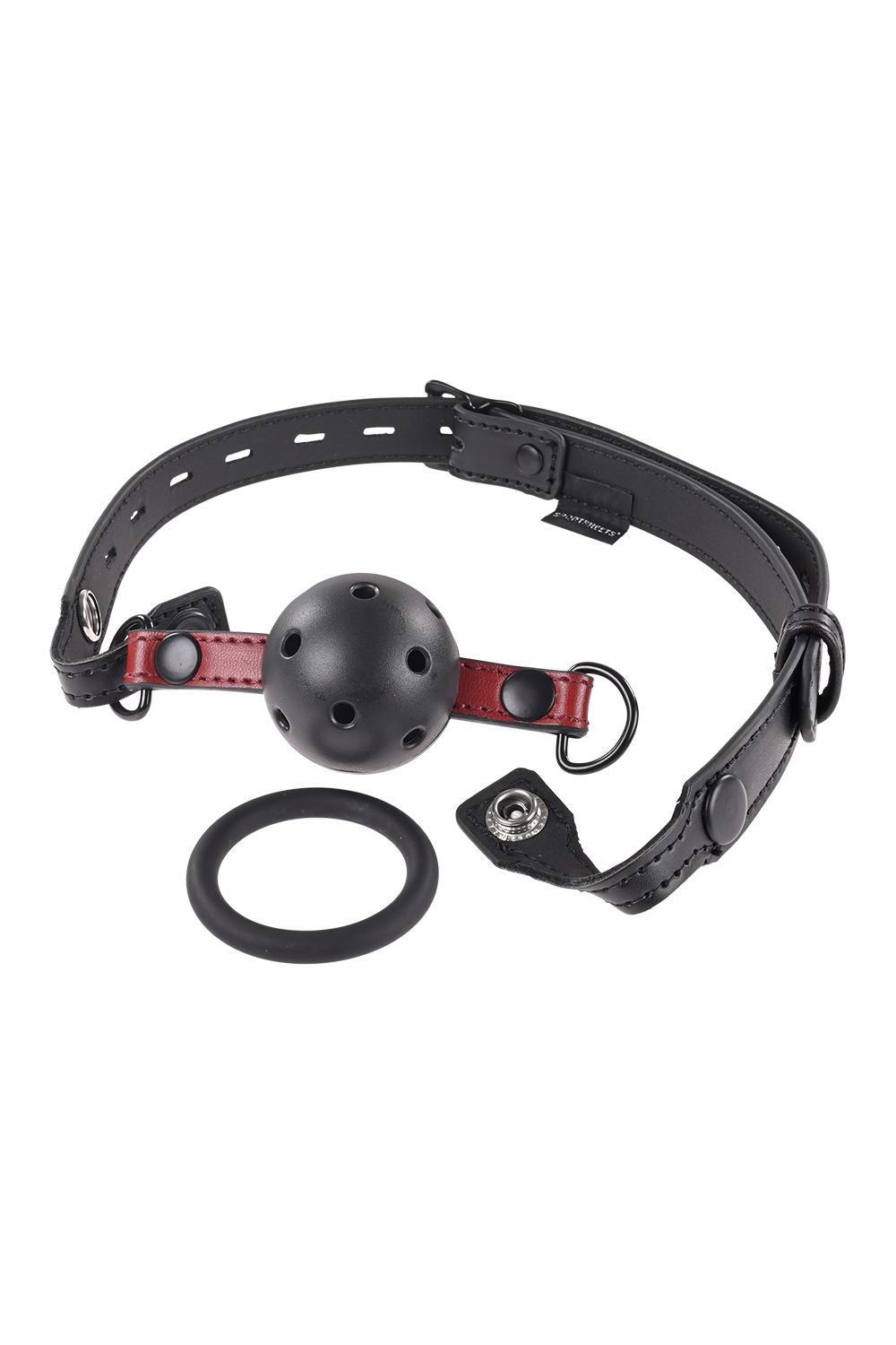 Add the “shhhh” to sultry with bright scarlet accents on a black satin finish. Luxurious faux leather and your choice of bite ring or breathable ball gag make the Saffron Interchangeable Gag a versatile must-have for any bondage collection. Simply unsnap each side of the gag to change out pieces for multiple ways to play.Equipped with interchangeable bite piecesHigh-quality, vegan leather design for added durabilityAdjustable buckle for a secure fitMaterial: PU Leather / Iron / Silicone / ABS Plastic