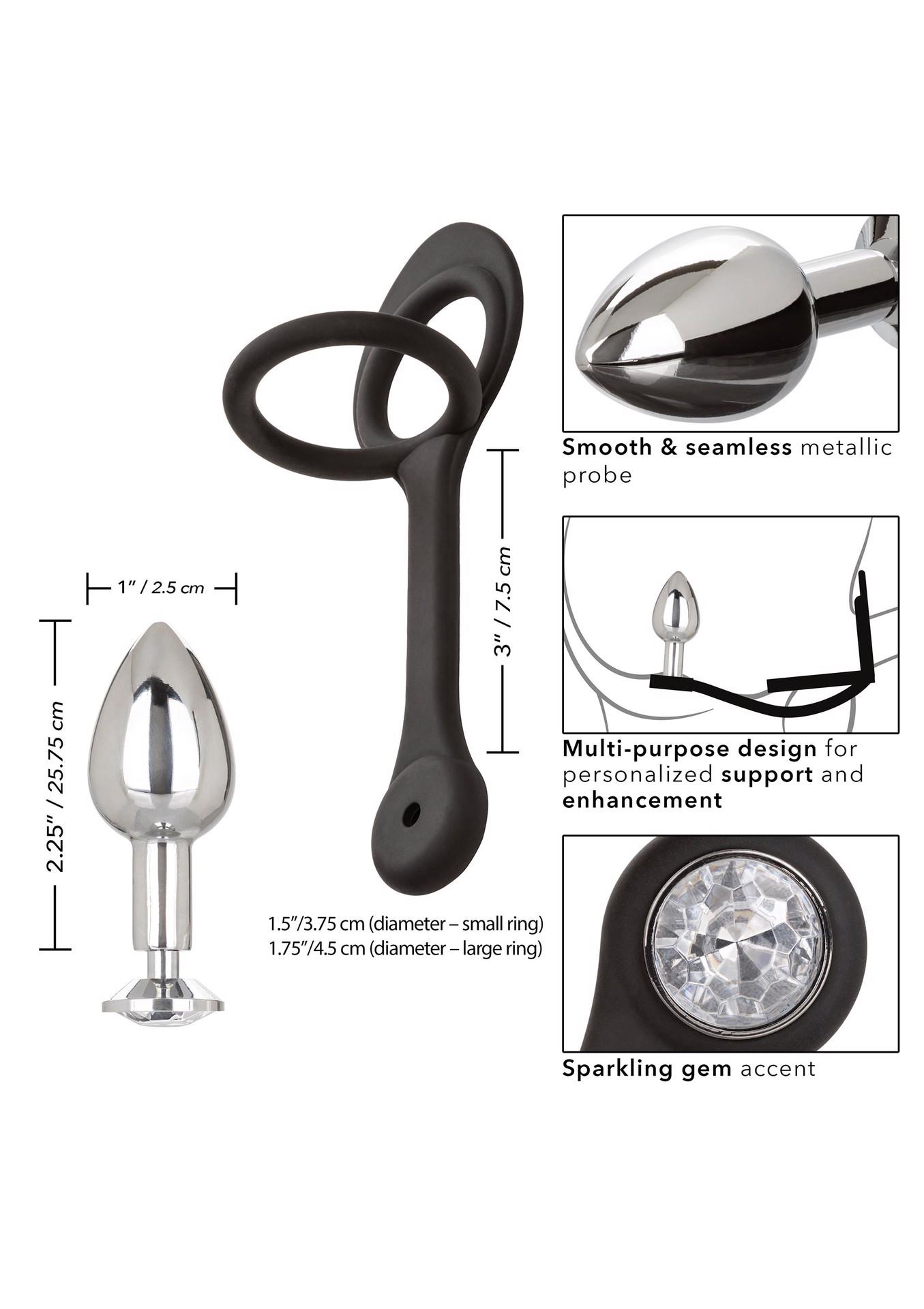 Wyrusz do wszechświata spersonalizowanej przyjemności dzięki miniwtyczce Star Fucker. Elastyczny, silikonowy podwójny wzmacniacz jest połączony z elegancką, bezszwową metalową sondą, zapewniając wszechstronne wsparcie, ulepszenie, a nawet kuszącą grę temperaturową. Miękki silikonowy podwójny wzmacniacz został stworzony, aby zwiększyć wytrzymałość, poprawić wrażliwość i zapewnić doskonałe wsparcie erekcji. Baw się, używając razem podwójnego wzmacniacza i metalowej sondy, i nie zapominaj, że można je zdemontować w celu łatwego czyszczenia. Elastyczna sonda jest wykonana z gładkiego, bezszwowego stopu aluminium, który zatrzymuje ciepło lub zimno, zapewniając jedyne w swoim rodzaju wrażenia z gry w temperaturę. Podczas gdy poszerzasz swoje horyzonty za pomocą eleganckiej miniwtyczki, użyj błyszczącej, zdobionej klejnotami podstawy do gorącej stymulacji, łatwego wkładania i delikatnego wyjmowania. Widok z tyłu jest jeszcze lepszy dzięki błyszczącej podstawie klejnotów.