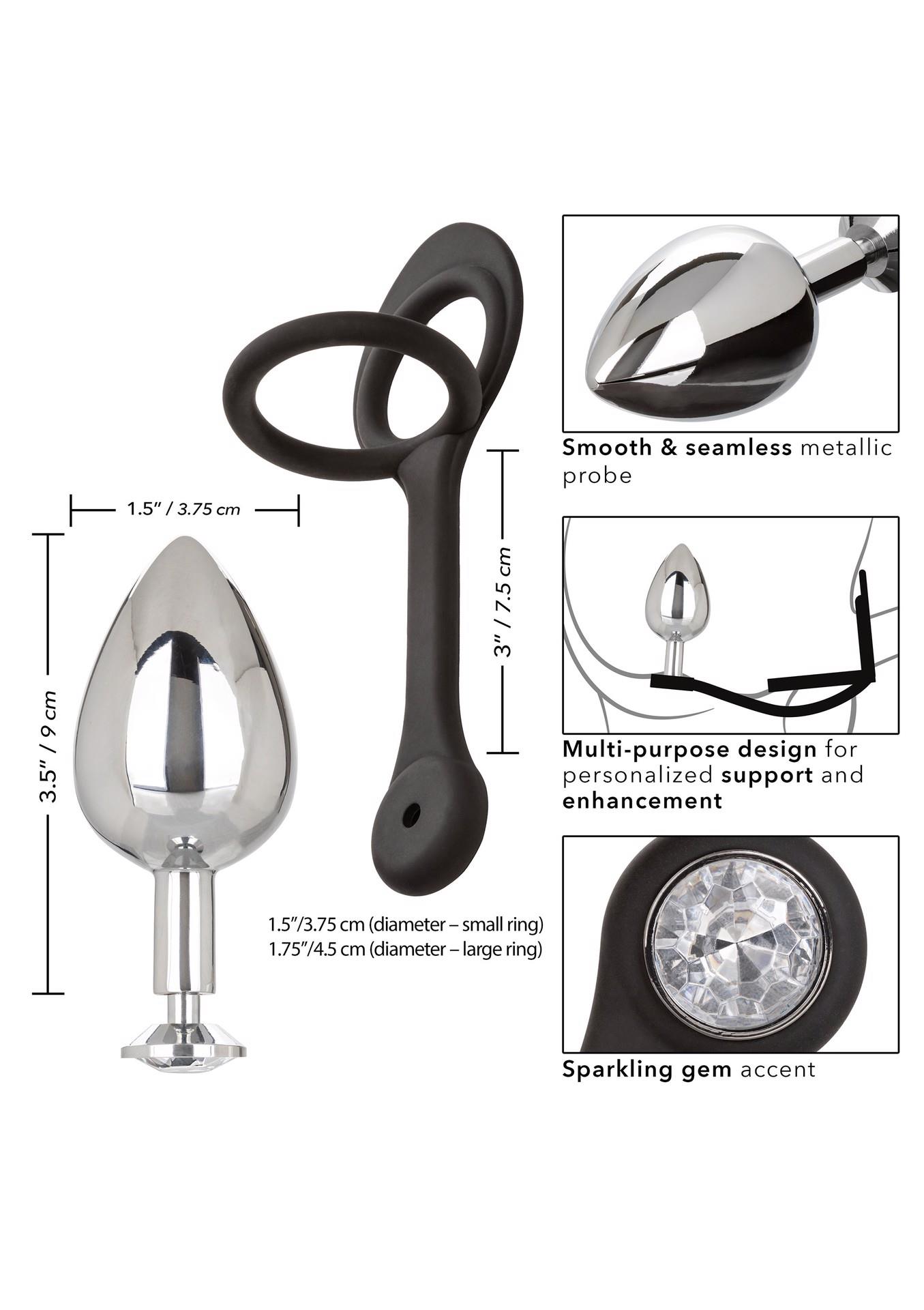 Wyrusz do wszechświata spersonalizowanej przyjemności dzięki Star Fucker XL Teardrop Plug. Elastyczny, silikonowy podwójny wzmacniacz jest połączony z elegancką, bezszwową metalową sondą, zapewniając wszechstronne wsparcie, ulepszenie, a nawet kuszącą grę temperaturową. Miękki silikonowy podwójny wzmacniacz został stworzony, aby zwiększyć wytrzymałość, poprawić wrażliwość i zapewnić doskonałe wsparcie erekcji. Baw się, używając razem podwójnego wzmacniacza i metalowej sondy, i nie zapominaj, że można je zdemontować w celu łatwego czyszczenia. Elastyczna sonda jest wykonana z gładkiego, bezszwowego stopu aluminium, który zatrzymuje ciepło lub zimno, zapewniając jedyne w swoim rodzaju wrażenia z gry w temperaturę. Podczas gdy poszerzasz swoje horyzonty za pomocą bulwiastej zatyczki w kształcie łezki, użyj błyszczącej, ozdobionej klejnotami bazy do gorącej stymulacji, łatwego wkładania i delikatnego wyjmowania. Widok z tyłu jest jeszcze lepszy dzięki błyszczącej podstawie klejnotów.