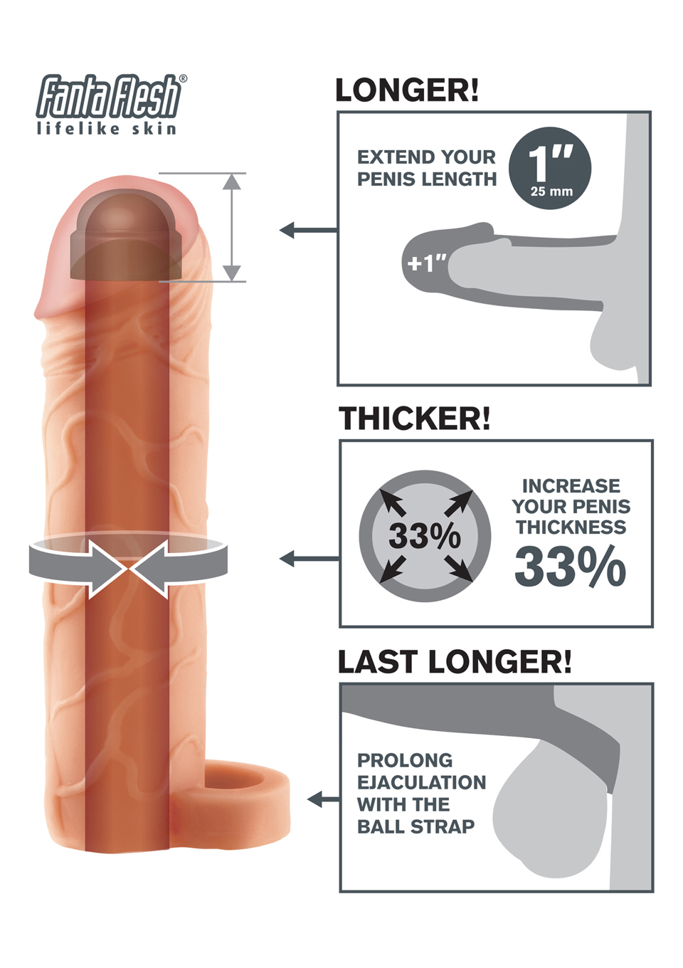 Zmień swojego penisa w maszynę do natychmiastowej przyjemności dzięki niesamowitym naprężeniom Fantasy X. Teraz możesz być takim, jakim możesz być i zadowolić swojego partnera dzięki temu łatwemu w użyciu wzmacniaczowi erekcji. Opracowany jako bezpieczna, przystępna cenowo, niechirurgiczna alternatywa dla drogich procedur medycznych i tabletek, Twój Fantasy X-tension zapewni Ci największą, najgrubszą i najbardziej satysfakcjonującą wędkę, jaką kiedykolwiek sobie wyobrażałeś! Idealny dla mężczyzn z problemami z zaburzeniami erekcji i w połowie drogi, Twój nowy wzmacniacz zapewni rezultaty, które pokochają oboje partnerzy! Zintensyfikuj przyjemność dla was obojga dzięki przedłużeniu Perfect 1′ z paskiem kulkowym. Z paskiem kulkowym owiniętym ciasno wokół ciebie, przedłużysz wytrysk do najbardziej wybuchowego punktu kulminacyjnego, jaki kiedykolwiek sobie wyobrażałeś. Twój partner będzie cieszyć się głębszą penetracją dzięki przedłużeniu 1′ na czubku, podczas gdy niezwykle realistyczny trzon sprawi, że będziesz grubszy o 33%, zapewniając pełniejsze uczucie i wyjątkowy punkt kulminacyjny. Jest bardzo rozciągliwy, aby pomieścić większość rozmiarów, jest wystarczająco ciasny, aby pomóc Ci dłużej wytrzymać, a super miękki materiał Fanta Flesh jest jak druga skóra – tylko lepszy! Jeden rozmiar pasuje do większości. To nie jest prezerwatywa.