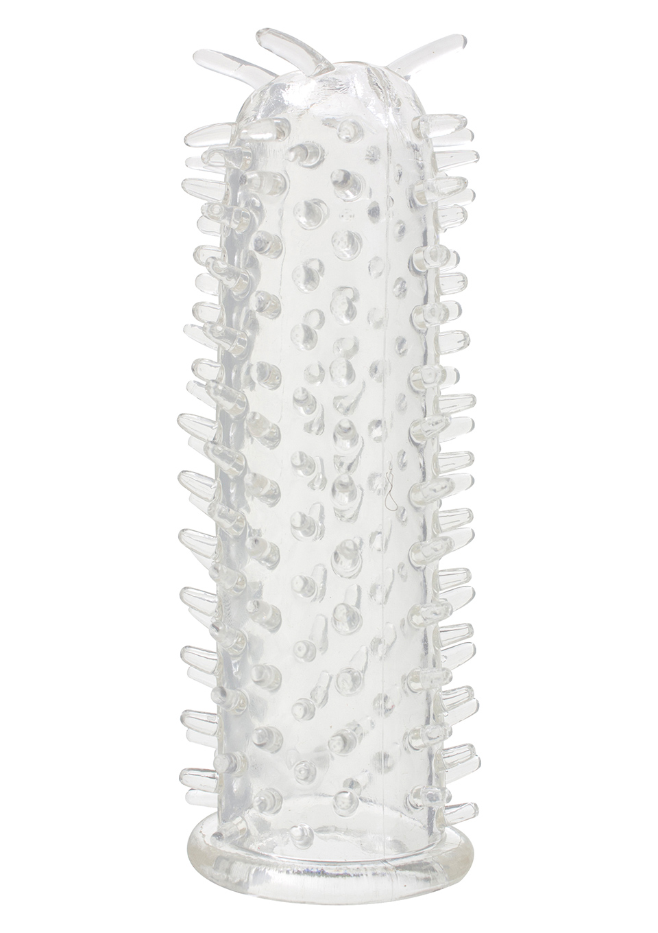 ELASTYCZNA NAKŁADKA NA PENISA z licznymi wypustkami stworzonymi specjalnie po to, aby zapewnić jak największą przyjemność partnerce. Dzięki uciskowi wywieranemu na penisa skutecznie wydłuża czas trwania stosunku. Idealnie nadaje się również na wibrator lub palce. Nasadka na penisa z mnóstwem wypustek, które podrażniają do nieprzytomności strefy erogenne kobiet. Nakładka jest wykonana z bardzo przyjemnego w dotyku żelu. Jest bardzo elastyczna i wytrzymała. Cechy: długość całkowita 11,5 cm średnica 1,9 cm – rozciągliwakolor przeźroczystawykonano z materiału żelowego TPR