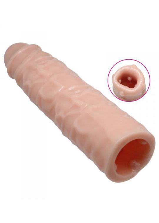 Nakładka przedłużająca z twardą końcówką. Rozmiar: długość 22 cm, średnica 5,5 cm. Miękki i wygodny w użyciu. Nie zawiera ftalanów.