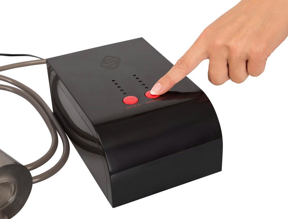 Od tej pory obciąganie będzie jeszcze bardziej napalone – i to bez bezpośredniego użycia rąk! Elektryczny masturbator z nową TECHNOLOGIÄ„ MASTURBACJI HANDS FREE z interwałową regulacją stymulacji. Mocne impulsy pompowania/ssania zapewniają automatyczne, rytmiczne podnoszenie i opuszczanie elastycznego miękkiego mankietu na penisa i są wzmocnione przez zintegrowany pierścień przyjemności! Stymulacja jest indywidualnie regulowana: 5 poziomów intensywności w 5 prędkościach = 25 różnych wariantów.