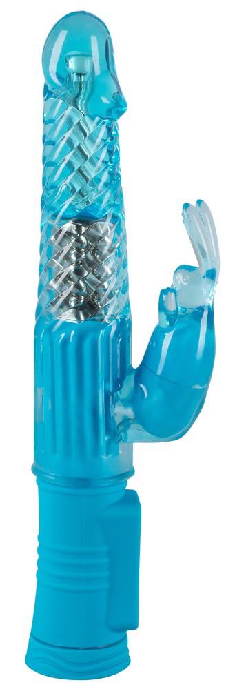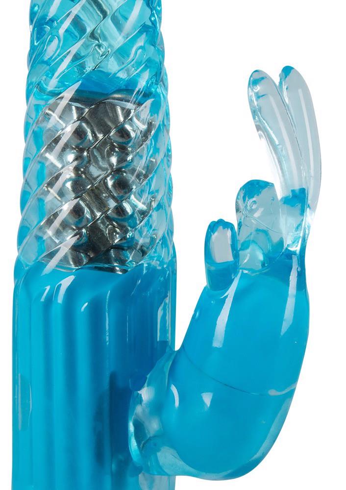 Wibrator perłowy z obracającym się wałem i ramieniem stymulującym łechtaczkę w kształcie królika z elastycznymi uszami. 4 poziomy obrotu i 8 poziomów wibracji regulowanych oddzielnie za pomocą jednego przycisku. Długość całkowita ok. 22 cm, średnica: ok. 2,6 – 3,2 cm. Materiał: TPE, ABS. (Prosimy zamawiać oddzielnie baterie: 4 x Micro)