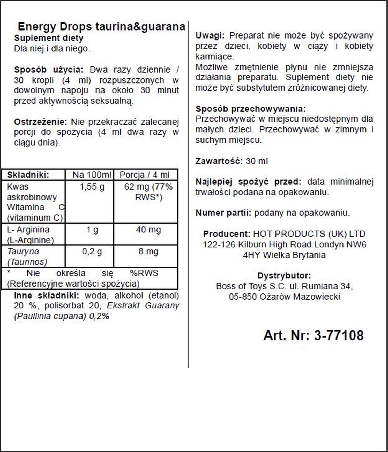 12 sierpnia 2024Supl.diety-Energy Drops-30ml Taurin & Guarana (m+w)