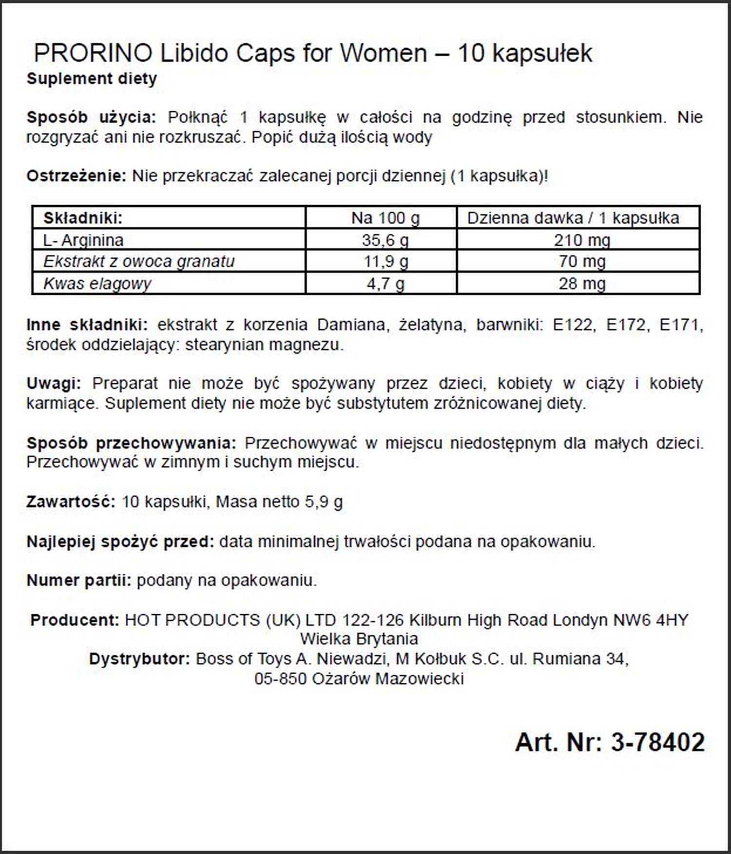 12 sierpnia 2024Supl.diety-PRORINO Women- 10pcs black line Libido Caps