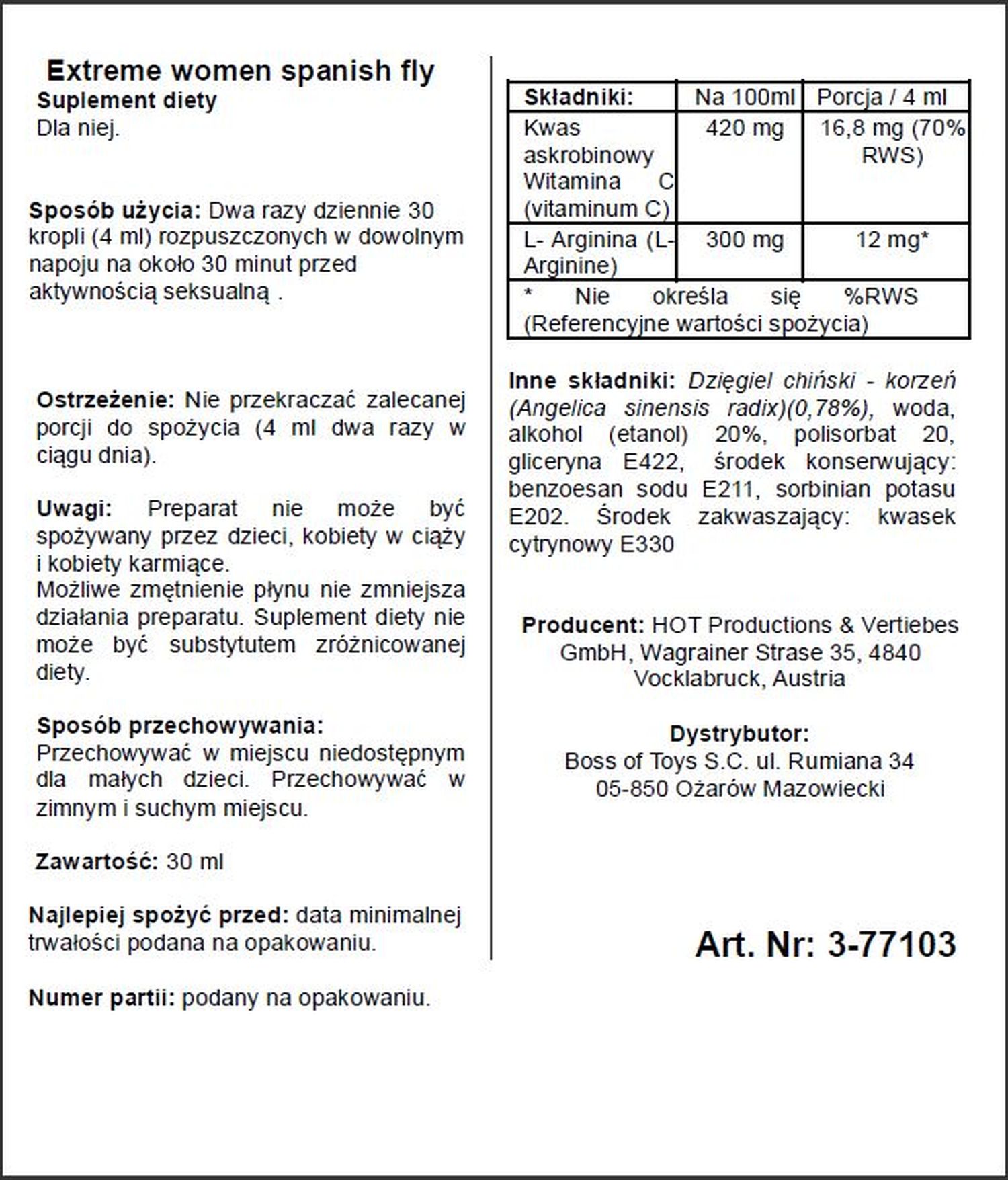 12 sierpnia 2024Supl.diety-Spain Fly extreme women- 30ml
