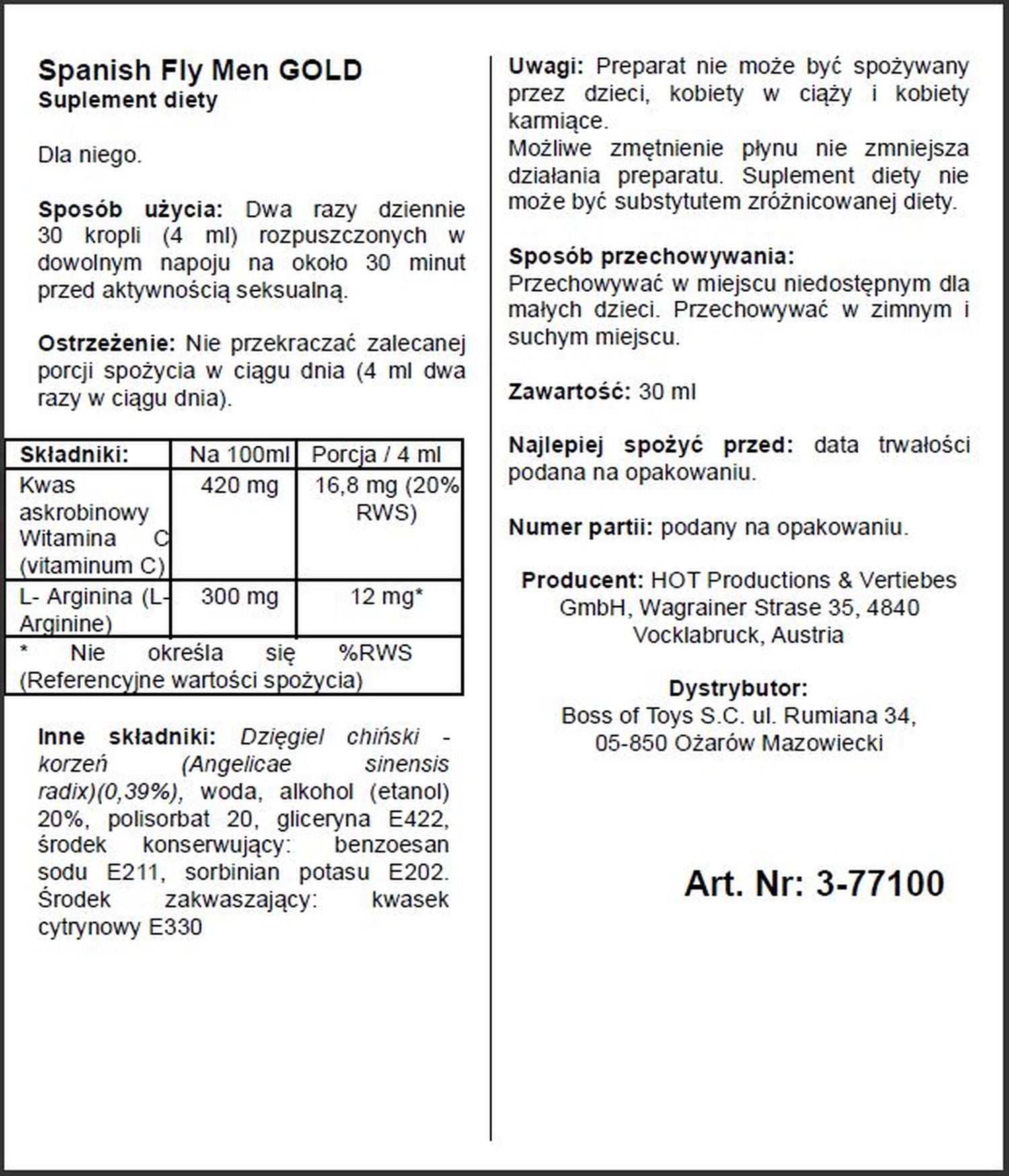 12 sierpnia 2024Supl.diety-Spain Fly Men- GOLD strong- 30ml