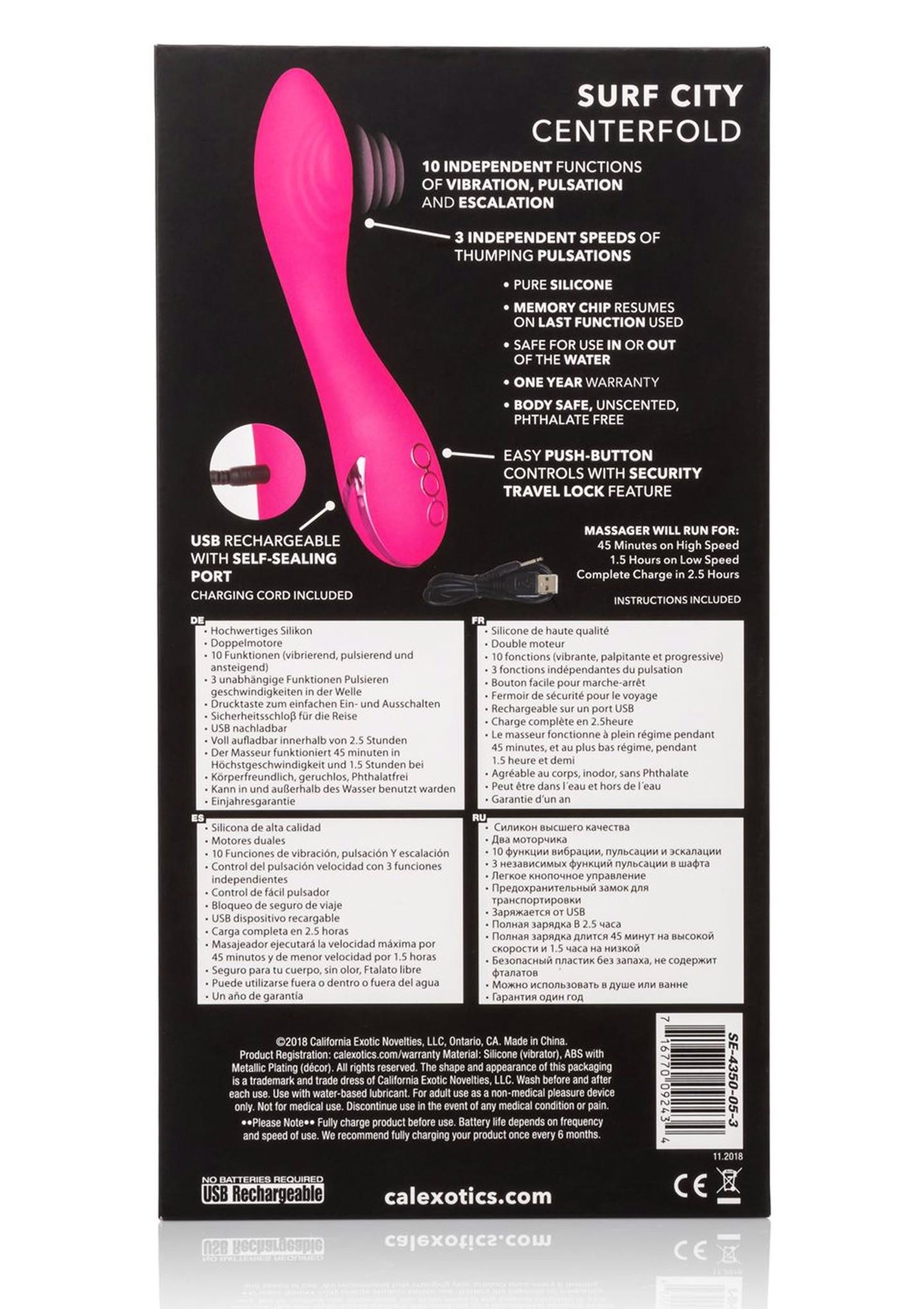 Zanurz się w falach przyjemności, gdy California Dreaming ™ Surf City Centerfold dokucza i łaskocze Cię w kierunku ekstazy. Potężny masażer różdżkowy ma 3 ekscytujące intensywności pulsowania i 10 funkcji wibracji, co daje przyjemność w życiu. Pulsująca końcówka zapewnia ekscytujące prędkości uderzenia, które na nowo definiują przyjemność. Wybierz intensywność swojej przyjemności z 3 ekscytującymi prędkościami i zanurz się głęboko w namiętną wewnętrzną stymulację. Aby zepchnąć Cię ponad krawędź, jedwabista atmosfera ma wstrząsającą kolano funkcję Power Boost zapewniającą natychmiastowe maksymalne wibracje.