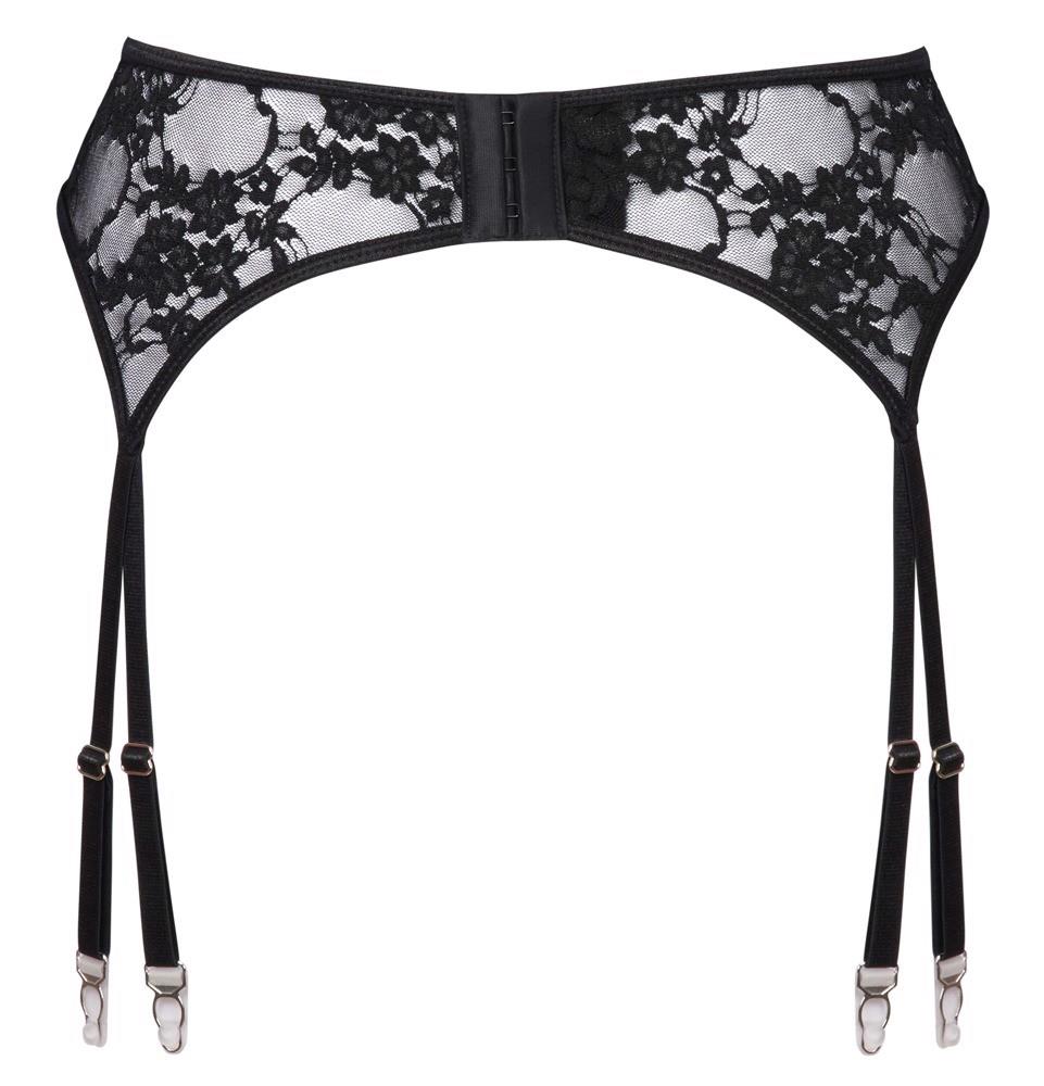 This black suspender belt from Cottelli LINGERIE shows off the waist, hips and thighs in an exciting way! Made from soft, silky, shiny stretch straps and silver-coloured connecting rings. The suspender straps at the front and back and the double thigh straps can be adjusted to fit.