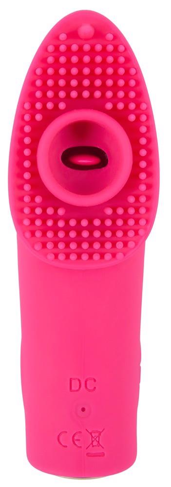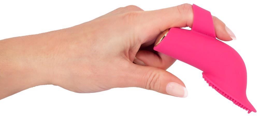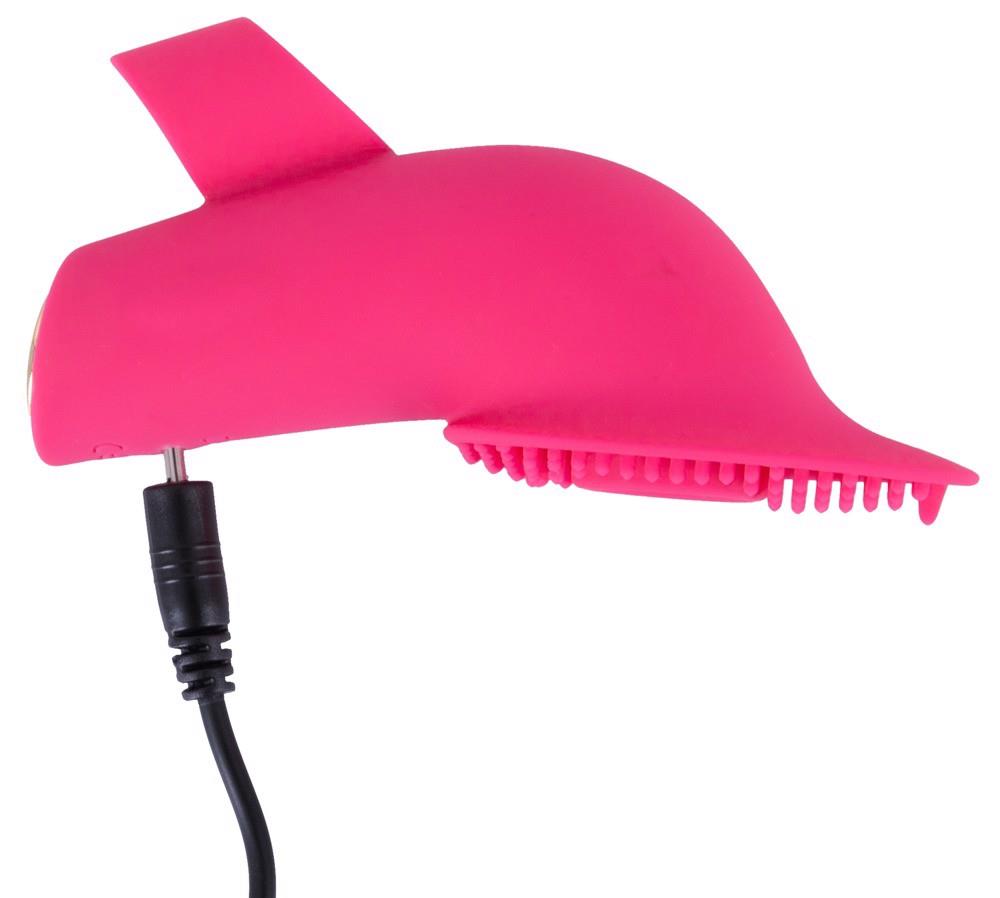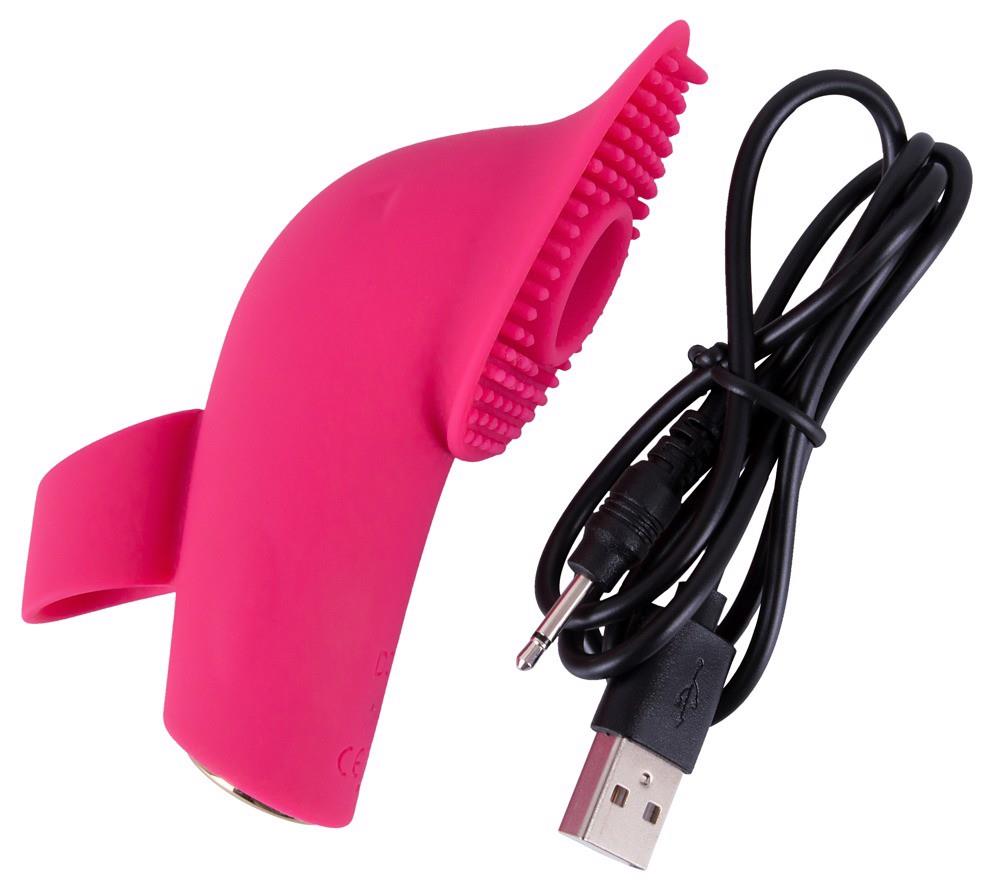 The Licking and Pulsating Finger Stimulator from Sweet Smile has a tongue that moves up and down in 10 speeds. It also has a pulsation/suction function in the surface that has soft dots on it. Everything can be easily adjusted with the button on the toy. The wide, flexible, non-slip ring fits wonderfully on the finger. The Finger Stimulator is covered in silicone material which feels great against the skin during pleasure. It can be recharged with the included USB cable.