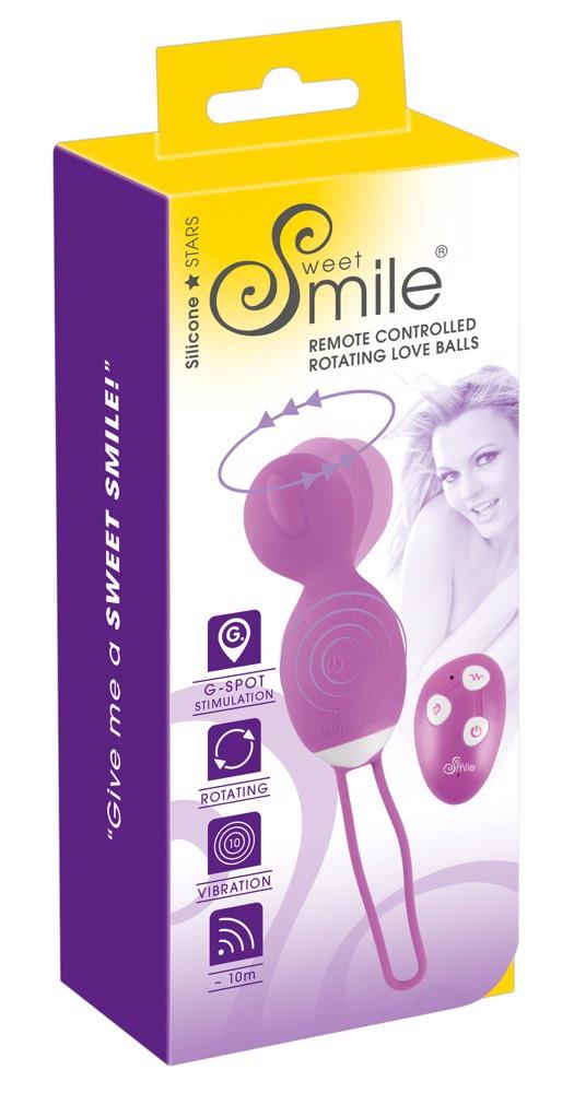Obrotowa kulka miłości RC Rechargeable RC Rotating Love Ball marki Sweet Smile z 10 trybami wibracji i jednym trybem rotacji – wszystko (łącznie z włączaniem) można wygodnie kontrolować za pomocą bezprzewodowego pilota. Z elastycznym paskiem zwrotnym i stożkowym kształtem dla łatwiejszego zakładania. Idealny dla początkujących, którzy nie mają doświadczenia z dnem miednicy lub dla delikatnej stymulacji. Miękka w dotyku tekstura.
