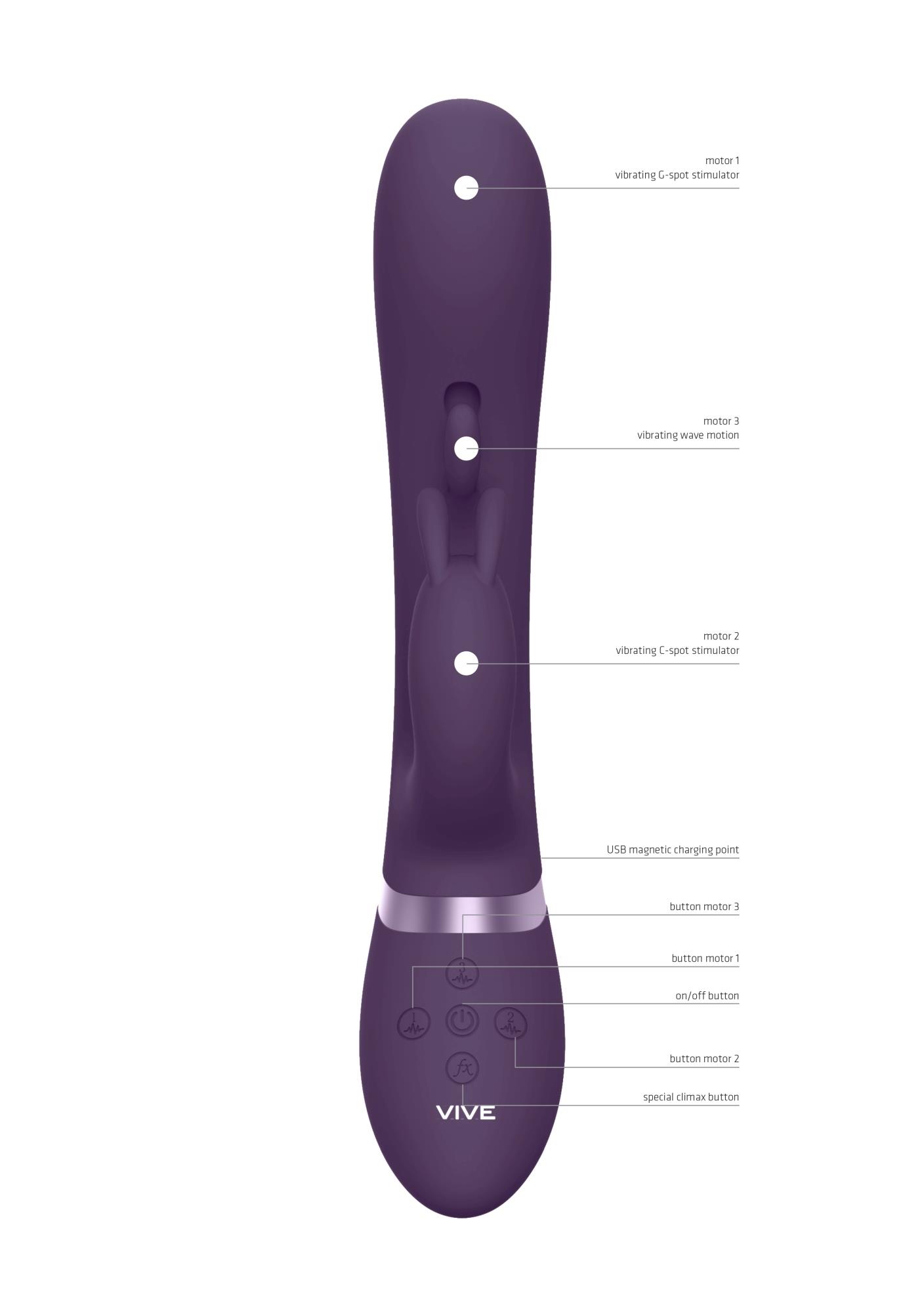 TAMA trafia we wszystkie właściwe miejsca. Wykorzystuje trzy 10-funkcyjne silniki nowej generacji F1 oraz zaawansowaną technologię (wszystkimi trzema silnikami można sterować niezależnie od siebie): jeden innowacyjny 10-funkcyjny wibrujący silnik NG F1 do stymulacji punktu G, jeden 10-funkcyjny wibrujący silnik NG F1 do stymulacji łechtaczki oraz jeden 10-funkcyjny silnik NG F1 w trzonie wibratora zapewniający falujące ruchy. Dzięki temu możesz mieć pewność, że wszystkie Twoje erogenne strefy dostaną poziom rozkoszy na jaką zasługują. Oznacza to też, że możesz korzystać z aż 1000 różnych kombinacji ustawień. Zabawkę wykonano w 100% z gładkiego silikonu medycznego (który jest zarazem hipoalergiczny), jest całkowicie wodoodporna (IPX7) i niesamowicie cicha (poniżej 60 dB). Tym samym możesz jej używać, gdy tylko przyjdzie ci na to ochota! Wibrator wyposażono w akumulator litowo-jonowy ładowany z użyciem magnetycznego kabla USB. Po całkowitym naładowaniu kablem USB zabawka zapewnia 40 minut niezapomnianych zabaw. Po prostu podłącz, naładuj i baw się w najlepsze! A gdy już będziesz blisko, za jednym dotknięciem przycisku z funkcją szczytowania natychmiastowo nastawisz wszystkie silniczki na pełną moc i prędkość i, co najważniejsze, doprowadzisz się do orgazmu, który zwala z nóg. Wszystkie wibratory VIVE mają roczną gwarancję, by chronić twoją inwestycję.