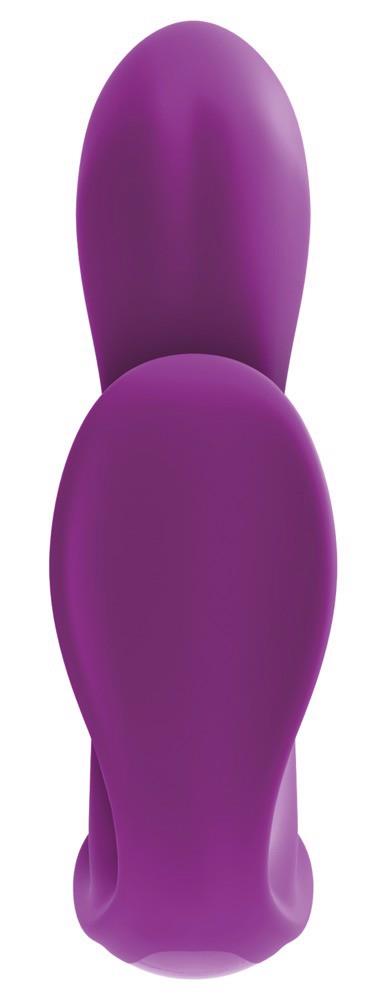 Wibrator ten jest idealny do potrójnej stymulacji – pieszczotliwie miękki silikon wibratora wsuwa się jakby sam z siebie, skrzydełko delikatnie gra na łechtaczce, a korek analny wprawia anusa w drżenie. Trzy silniki stymulują w 10 ekscytujących trybach wibracji. Ten super stymulator może być również noszony w majtkach i łatwo sterowany za pomocą dołączonego pilota. Odporny na zachlapanie. W zestawie kabel USB do ładowania i bateria do pilota: 1 x CR1620.