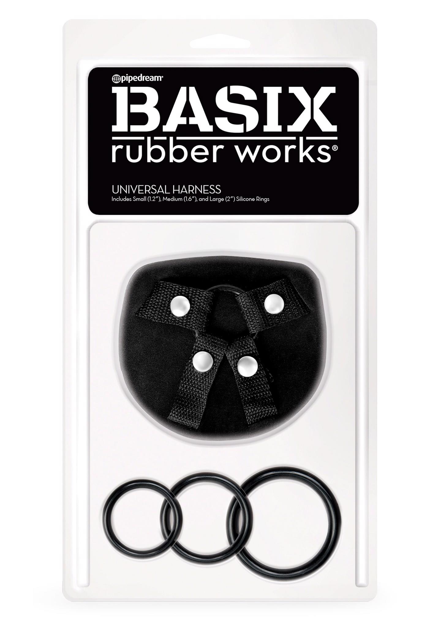 Uniwersalna uprząż do strap-onów. Zestaw zawiera 3 silikonowe pierścienie, które można dopasować do większości zabawek.