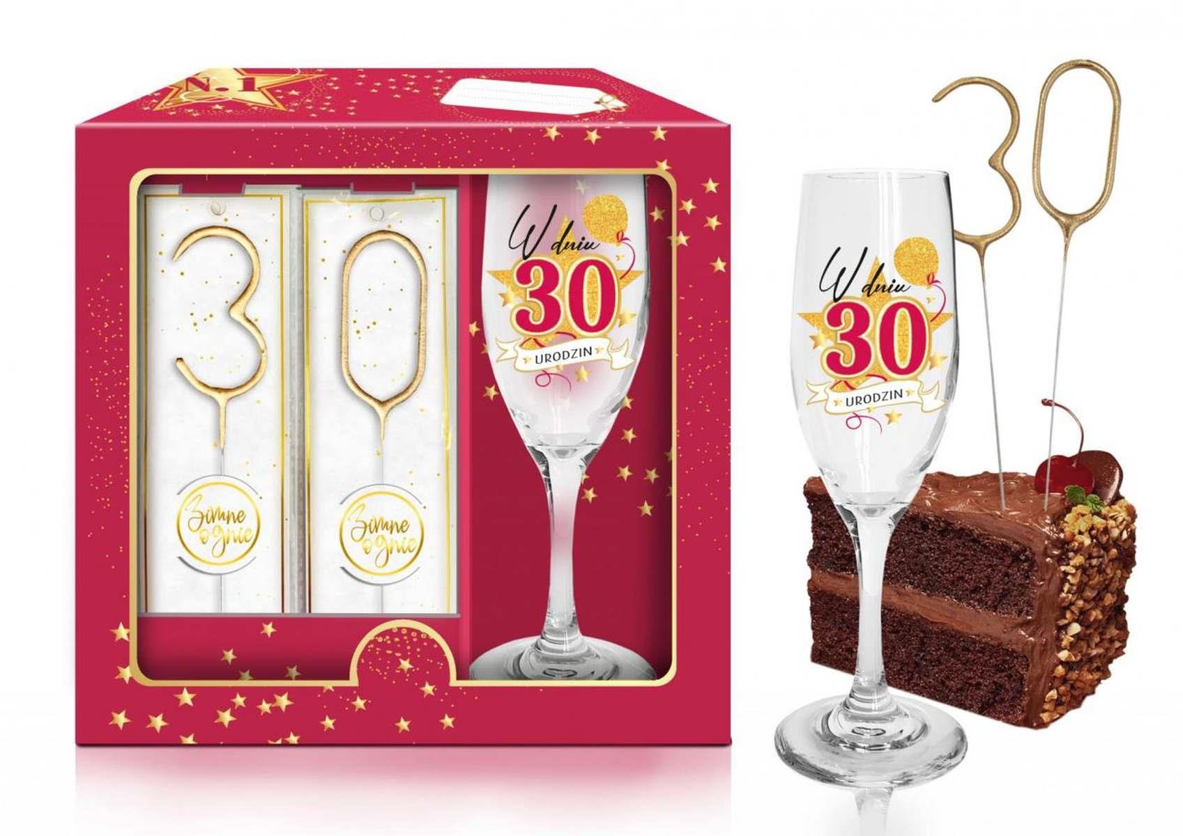 – Kieliszek do szampana z napisem ” W dniu 30 urodzin”