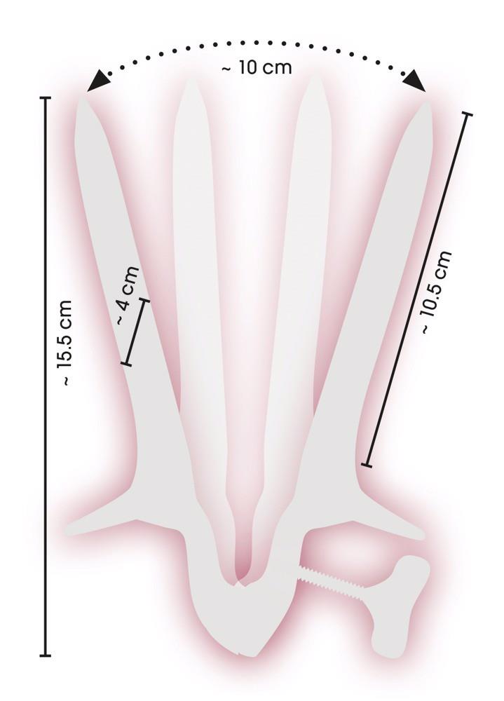 Solidne, stabilne wziernikowanie by fetish collection wykonane jest ze stali nierdzewnej (polerowanej na zewnątrz i matowej wewnątrz), a otwierane i rozsuwane jest za pomocą śruby regulacyjnej z boku.