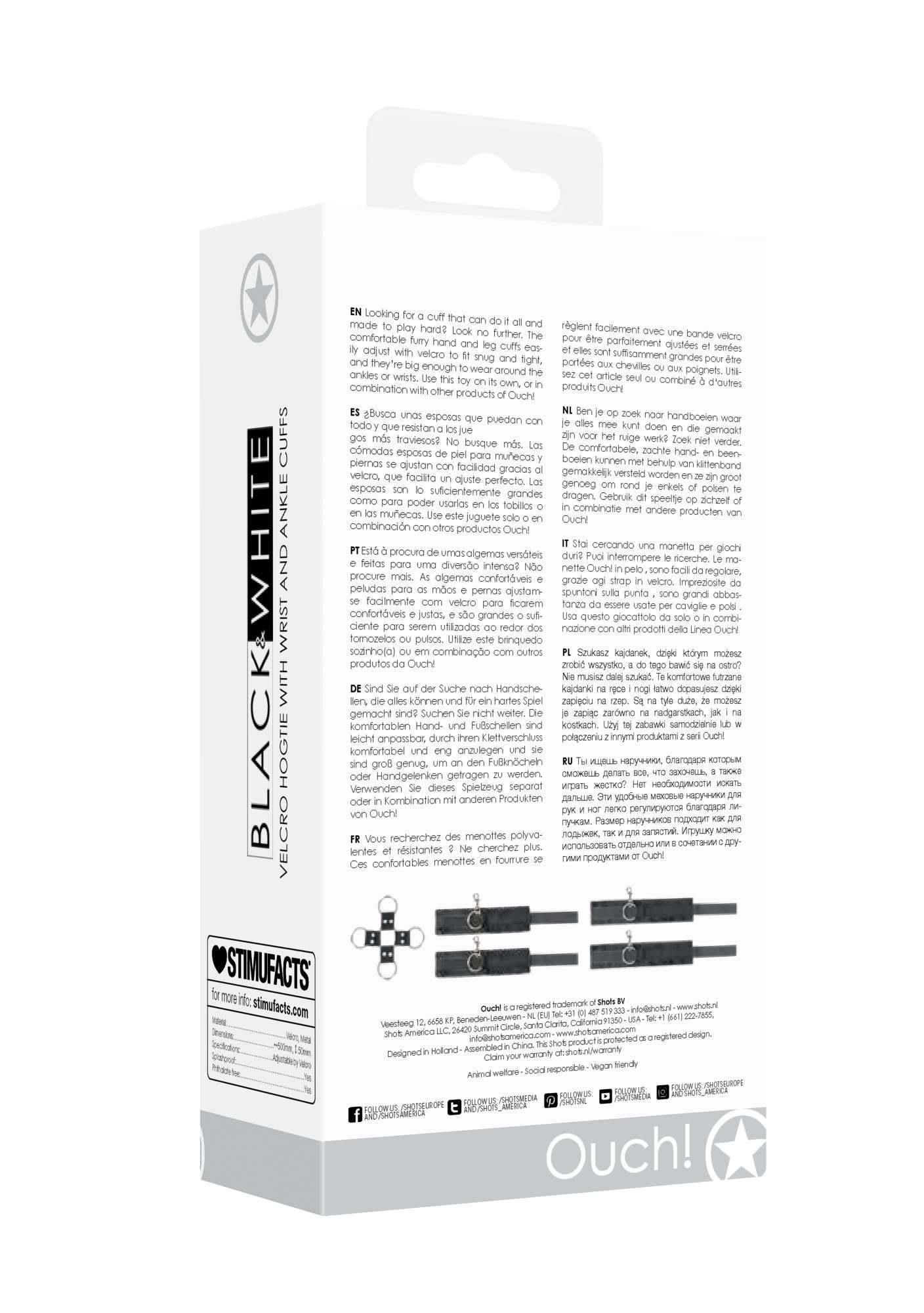 Szukasz kajdanek, dzięki którym możesz zrobić wszystko, a do tego bawić się na ostro? Nie musisz dalej szukać. Te komfortowe futrzane kajdanki na ręce i nogi łatwo dopasujesz dzięki zapięciu na rzep. Są na tyle duże, że możesz je zapiąc zarówno na nadgarstkach, jak i na kostkach. Użyj tej zabawki samodzielnie lub w połączeniu z innymi produktami z serii Ouch!