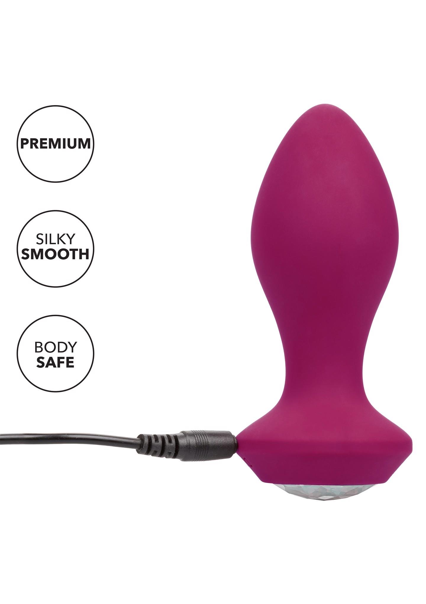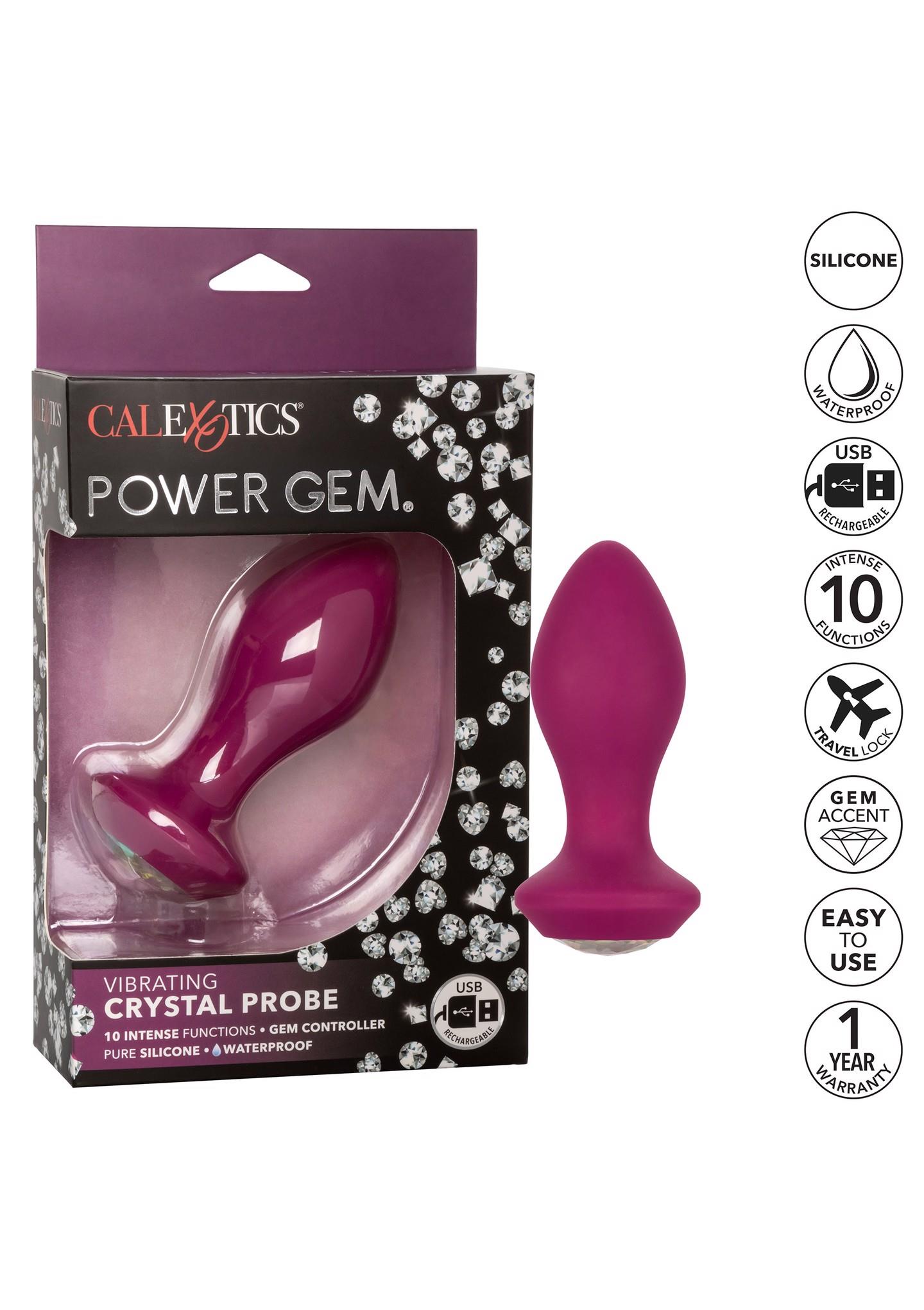 The Power Gem® Vibrating Crystal Probe is a dazzling, flexible silicone probe created to ease you into thrilling anal pleasure. The pliable, ergonomic design and powerful vibe motors allow this probe to flex with your movements while delivering intense vibrations. Indulge in personalized pleasure while the sleek probe pulsates with 10 vivacious vibration, passionate pulsation and erotic escalation. Control this variety of orgasmic options with the easy-touch gemstone button.