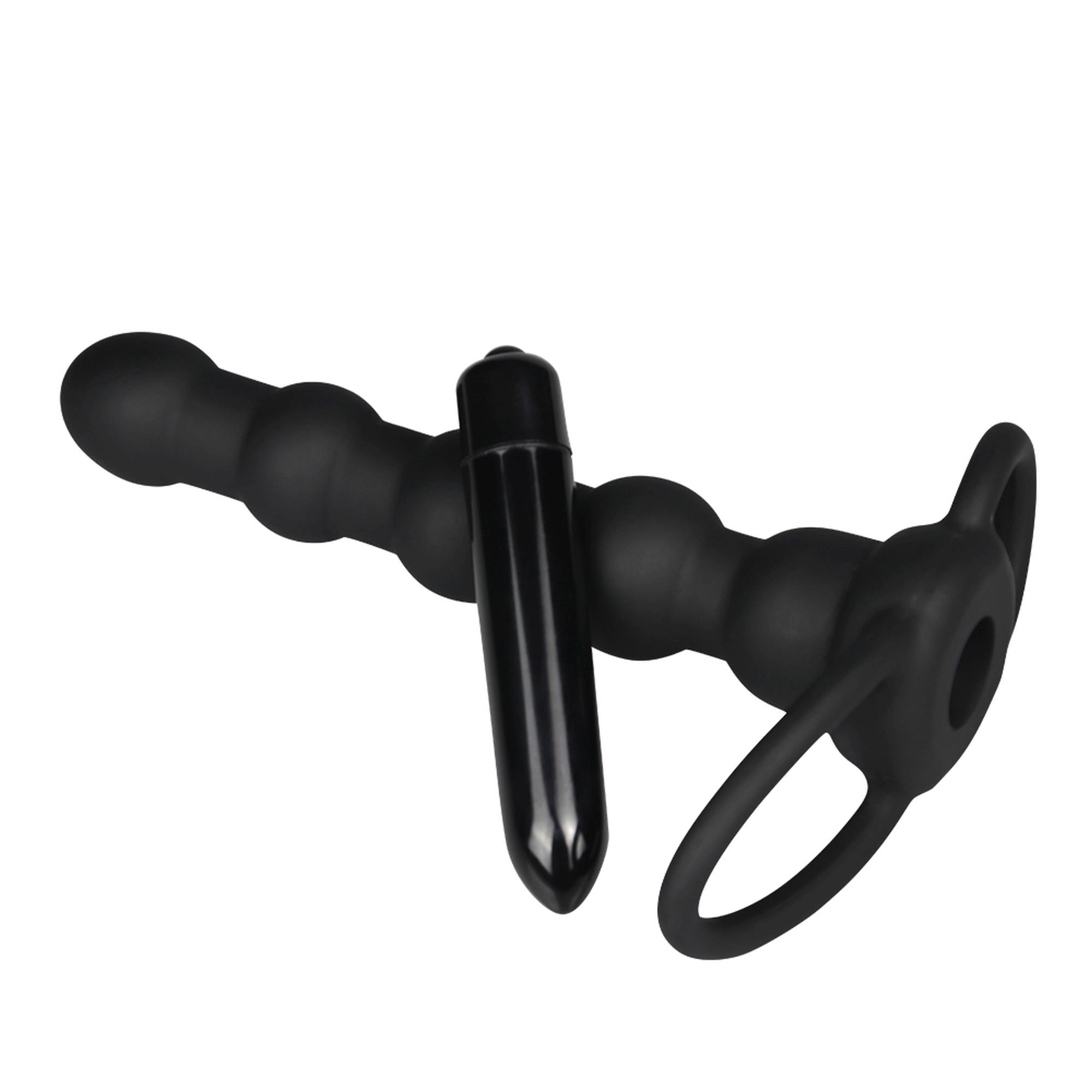 Podwójny pierścień na penisa z realistyczną sondą do zabawy z podwójną penetracją