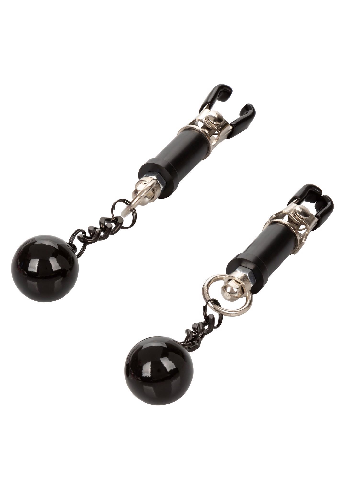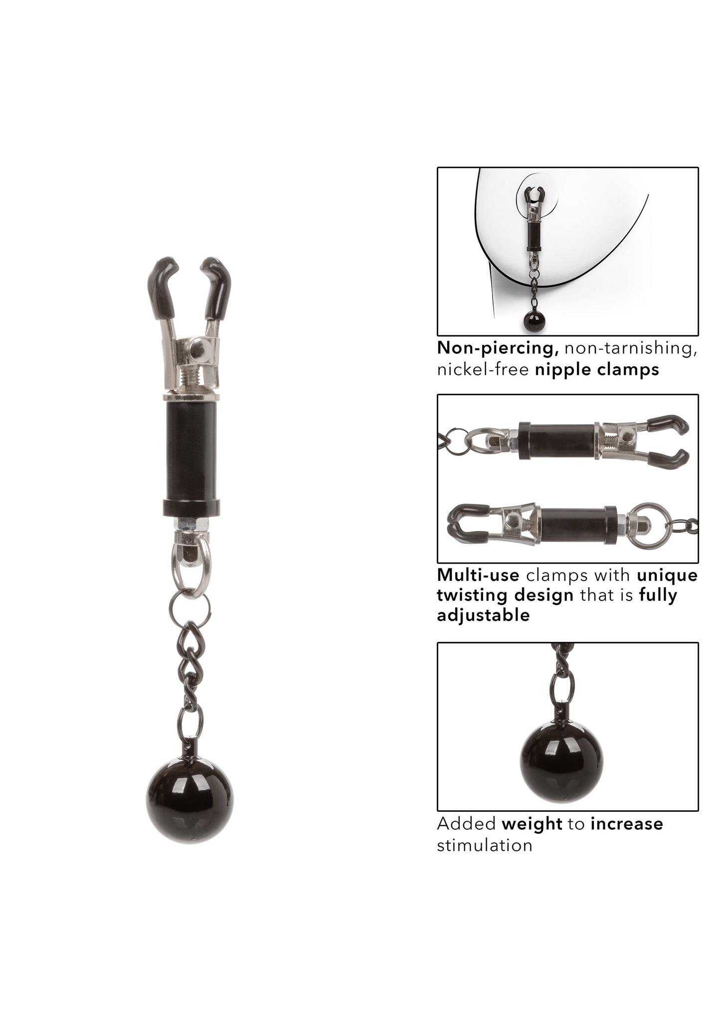 Blur the borders between pleasure and pain even further with the game-changing Nipple Grips Weighted Twist Nipple Clamps. Explore elevated sensation with 2 adjustable nipple clamps, unique twisting design, and swinging weight. Clamp the naughty clasps to your body and enjoy every rush of stimulation.