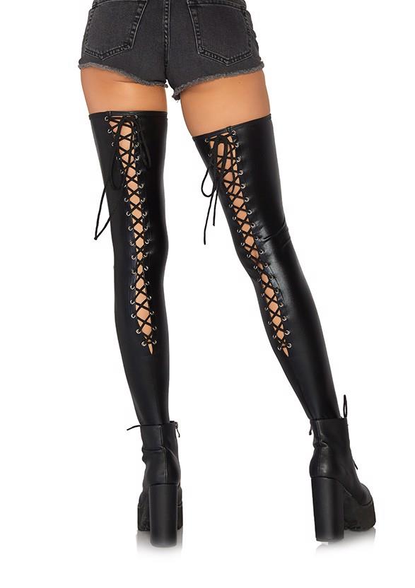 12 sierpnia 2024Wetlook lace up thigh highs Black