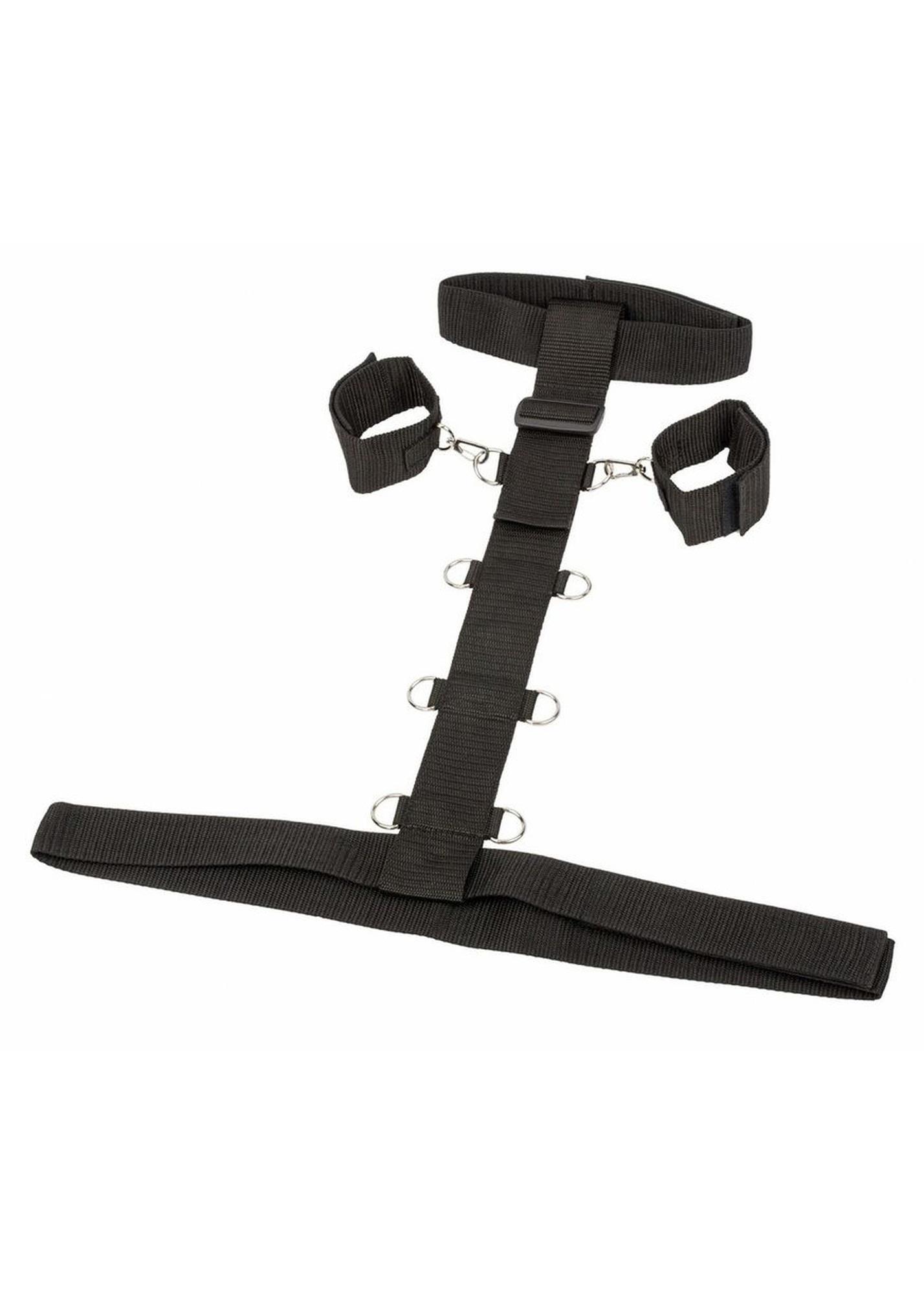 Zestaw do pełnego mocowania górnej części ciała partnera w kolorze czarnym. Jest zapinany na piersi i na plecach. Kilka pierścieni pozwala na zamocowanie rąk w różnych odległościach.