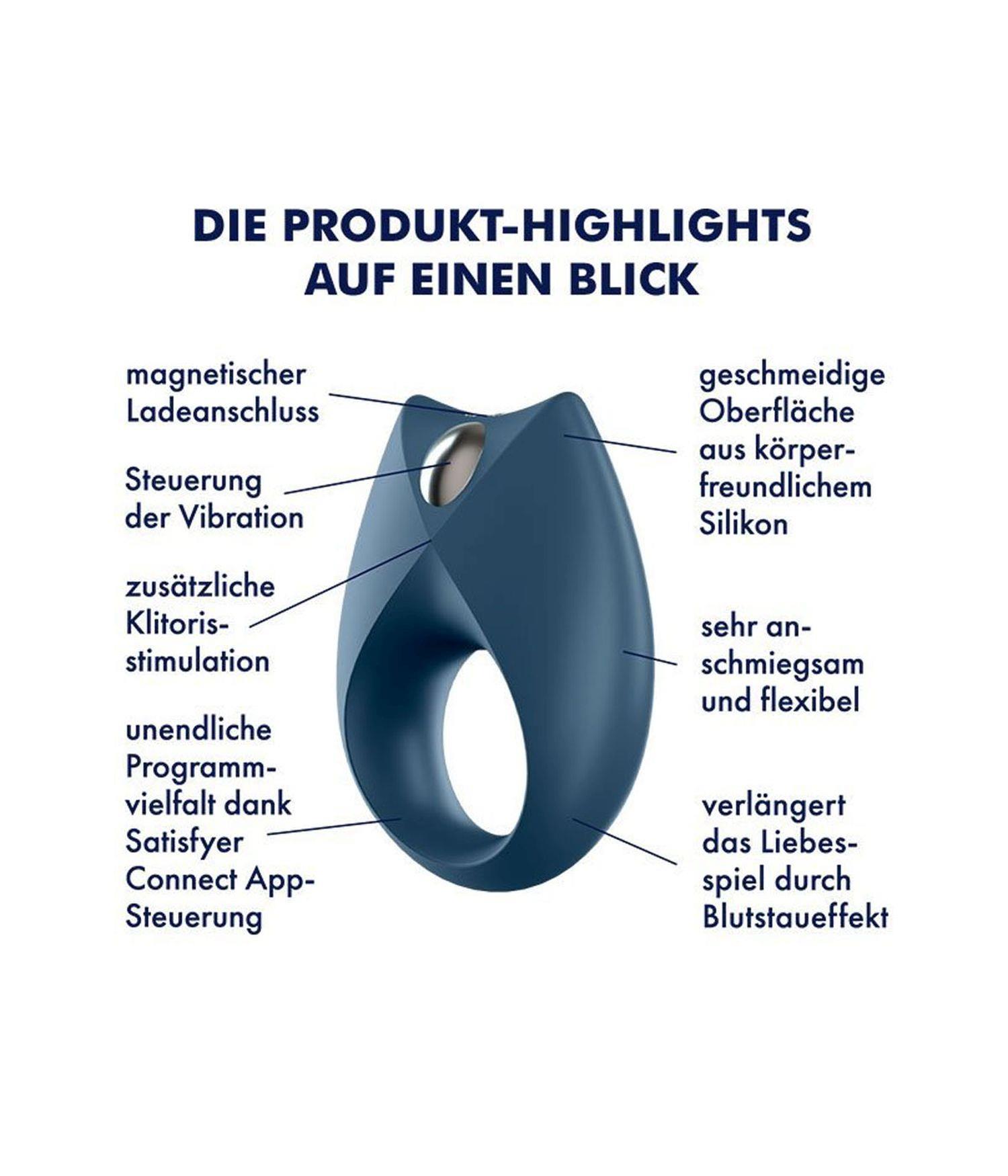 Przyjazny dla skóry silikon, intensywne programy wibracyjne i opcja kontroli aplikacji za pomocą aplikacji Satisfyer Connect sprawiają, że pierścirń jest najcenniejszym elementem w pudełku z biżuterią. Dzięki ergonomicznemu kształtowi Satisfyer wygodnie i ciasno przylega do najlepszego elementu, a także łechtaczkę przy każdym pchnięciu za pomocą stymulatora łechtaczki o dużym obszarze.