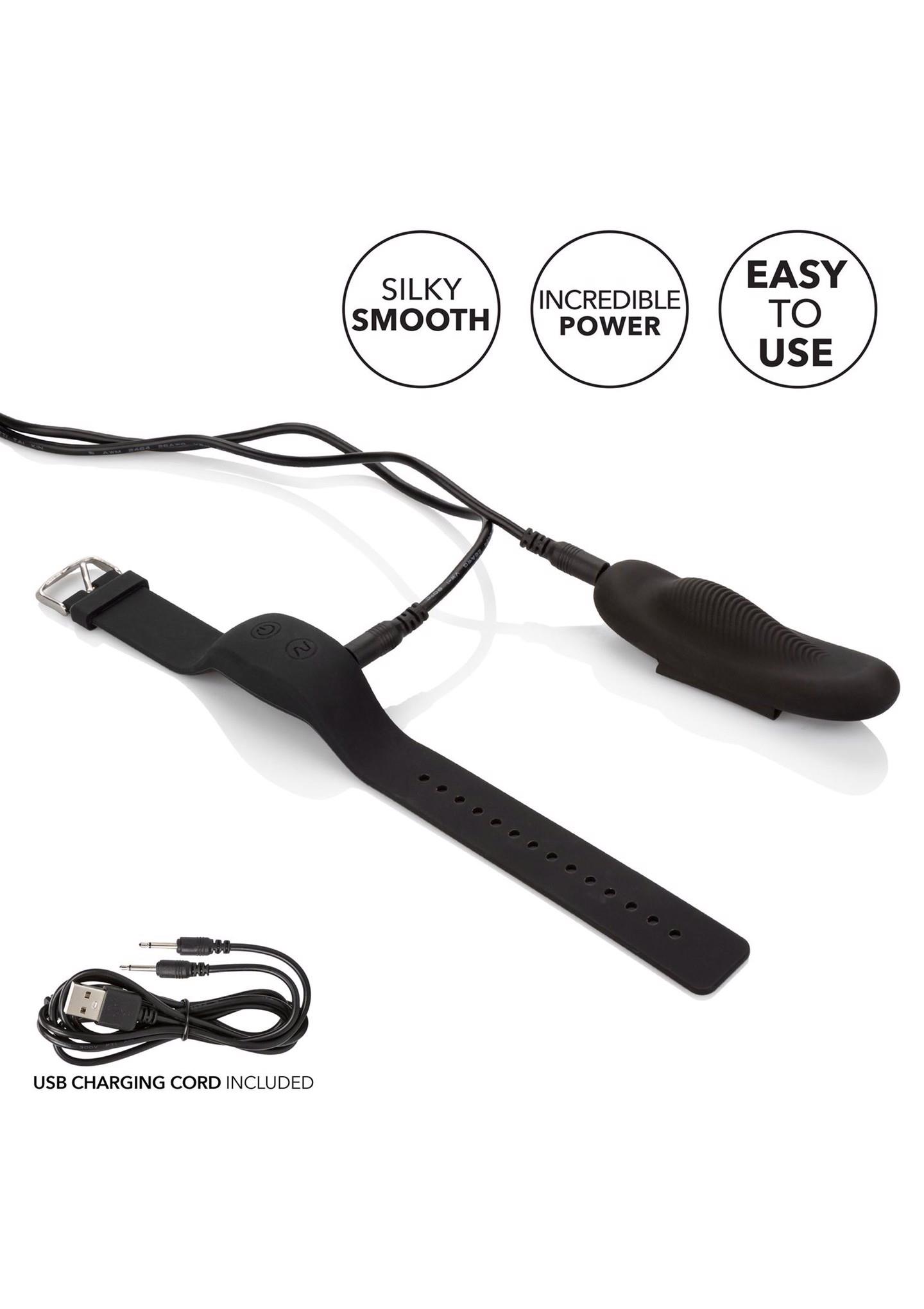 The Lock-N-Play Wristband Remote Panty Teaser is a powerfully petite massager paired with a playfully discreet wristband controller for adventurous pleasure seekers. The stylish, yet discreet wristband controller makes it easy for you or your lover to control vibration intensity with the touch of a button. Whenever or wherever passion takes you, this passionate panty vibrator’s 32.75-foot radius range and 12 intense functions of vibration are ready for playtime.Use the discreet controller or the button on the back of the panty teaser to cycle through 12 functions of vibration for a plethora of intensities and patterns to choose from. Whether you choose to stay in control or you have left pleasure in your partner’s hand, this powerful teaser is sure to deliver knee-shaking sensation. From blushing beginners to erotic experts, this blissful bullet vibe adds versatile vibrations to any toy box. Recharge your passion in under 1 hour with the provided USB cable for up to 90 minutes of low-speed vibration or 50 minutes of high-intensity stimulation.
