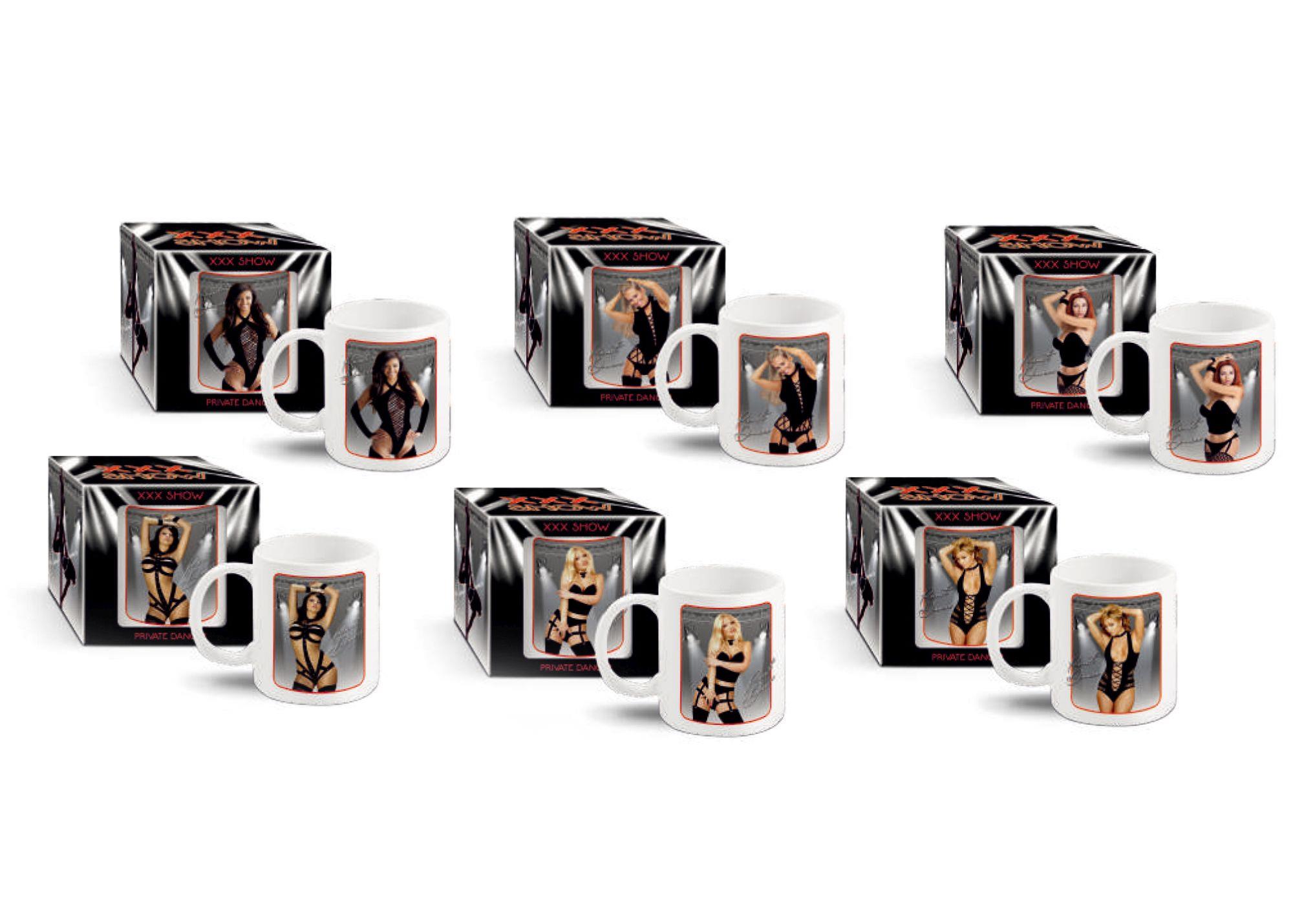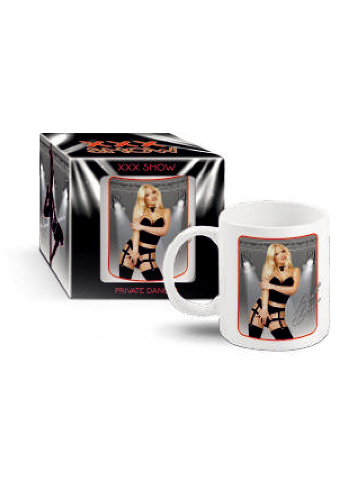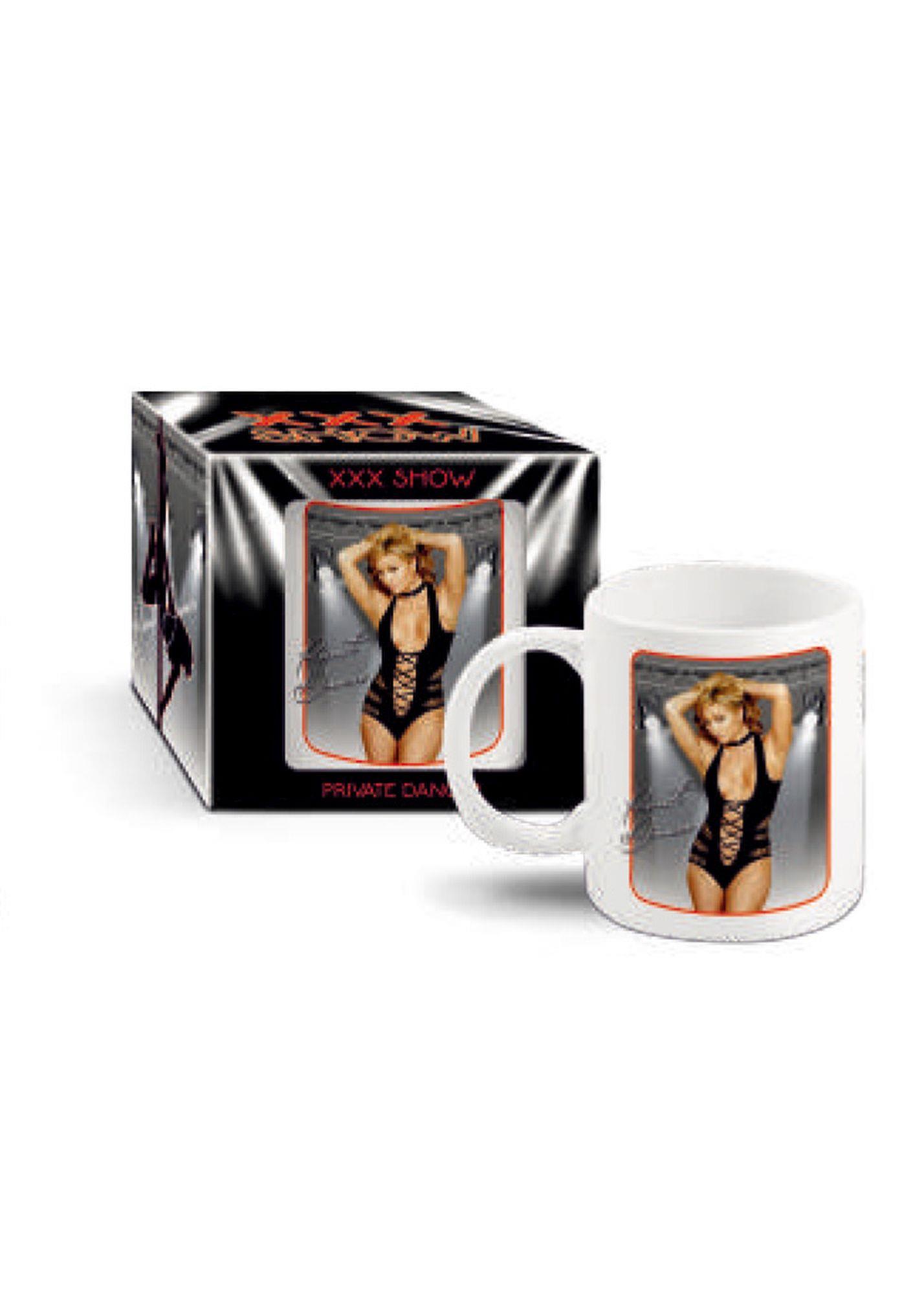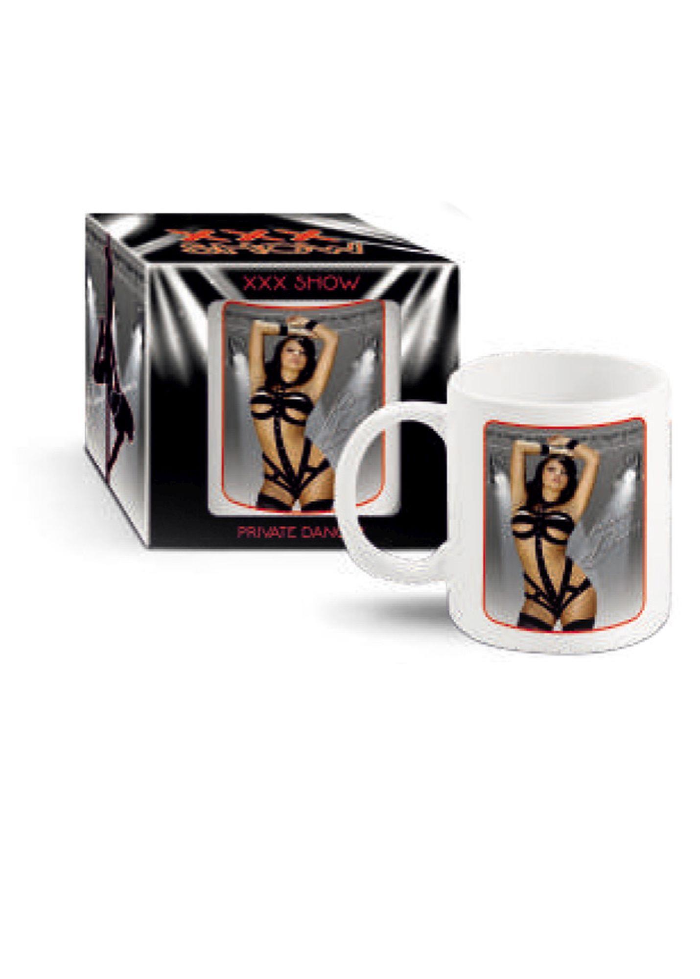 Biały, porcelanowy kubek z nadrukiem termicznym przedstawiającym seksowną tancerkę – elementy bielizny znikają pod wpływem temperatury napoju. Dostępny w sześciu wzorach. Produkt zapakowany w stylistycznie dopasowane opakowanie kartonowe z okienkiem.