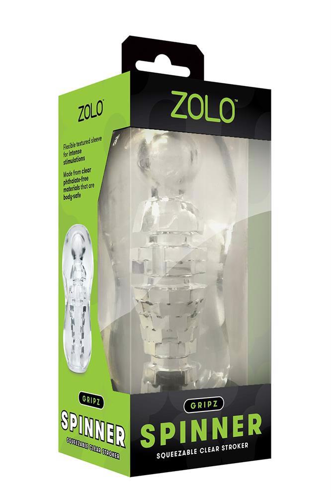 The ZOLO Gripz Collection introduces three new squeezable clear strokers, where you can watch the action as you make it happen! The Spinner is a flexible textured sleeve that provides intense stimulations using its unique “disco ball” like interior shape, and fits perfectly in your hand thanks to the ergonomic design. Made from clear phthalate-free materials that are body-safe.Squeezable clear masturbatorTwisting texture insideErgonomic designBodysafe